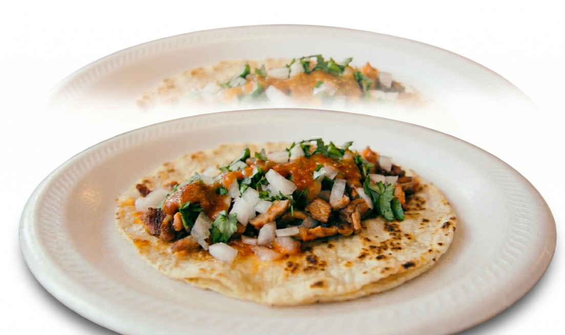 exquisitos tacos, elige tu favorito, acompañado de cebollacon cilantro , salsa verde picosa y pico de gallo