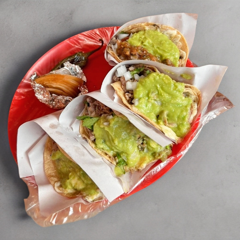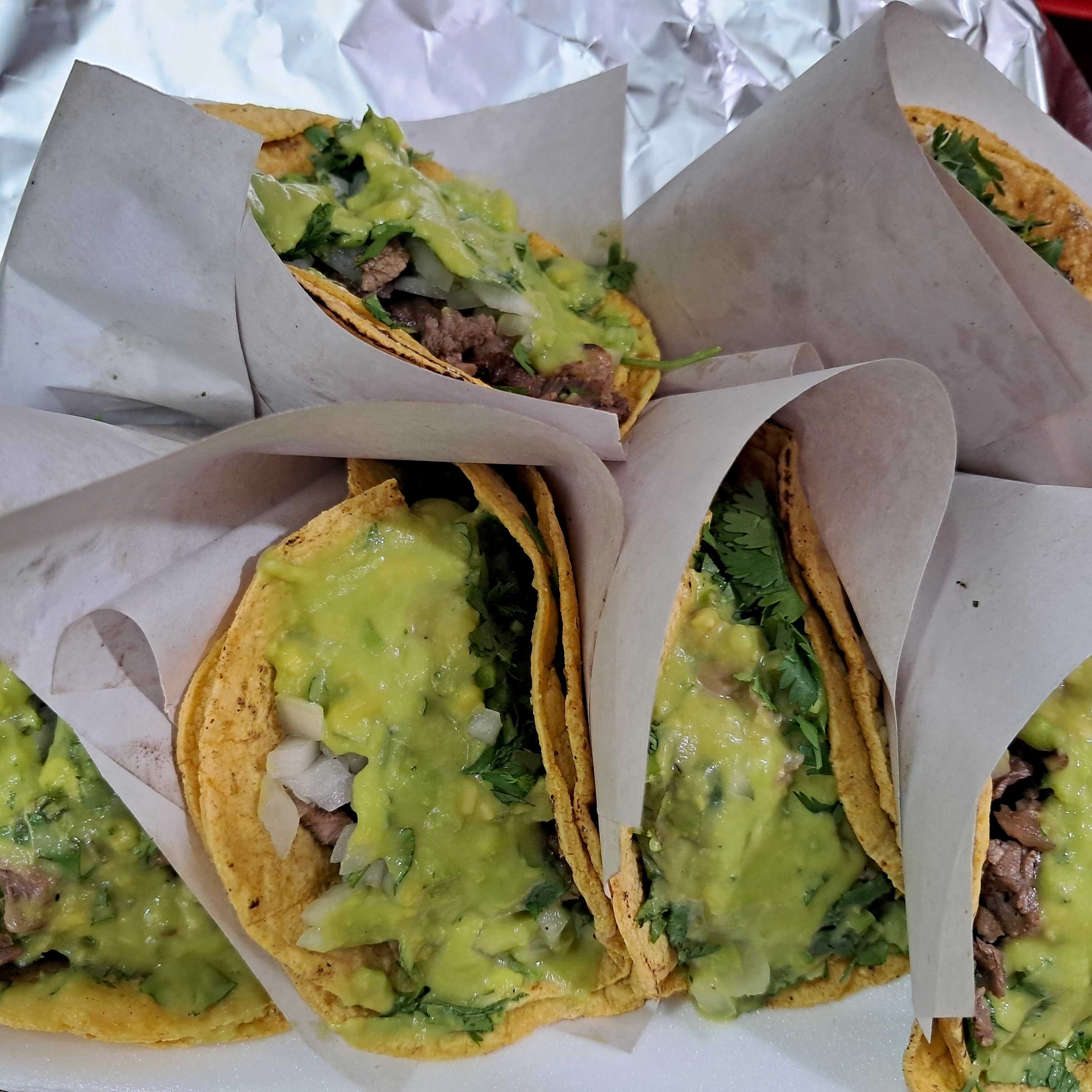 10 TACOS AL ESTILO TIJUANA, CARNE A ELEGIR, TODO LLEVA GUACAMOLE