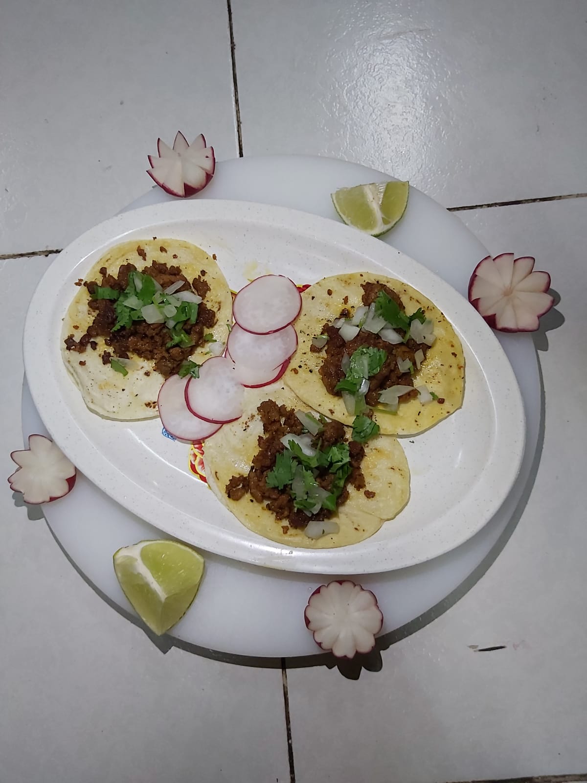 Incluye salsa, cebolla, tortillas, rábanos y cilantro.