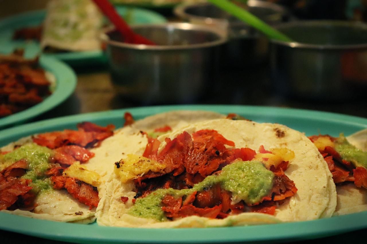 Delicisos tacos de al pastor con piña, incluye su salsa y pico de gallo