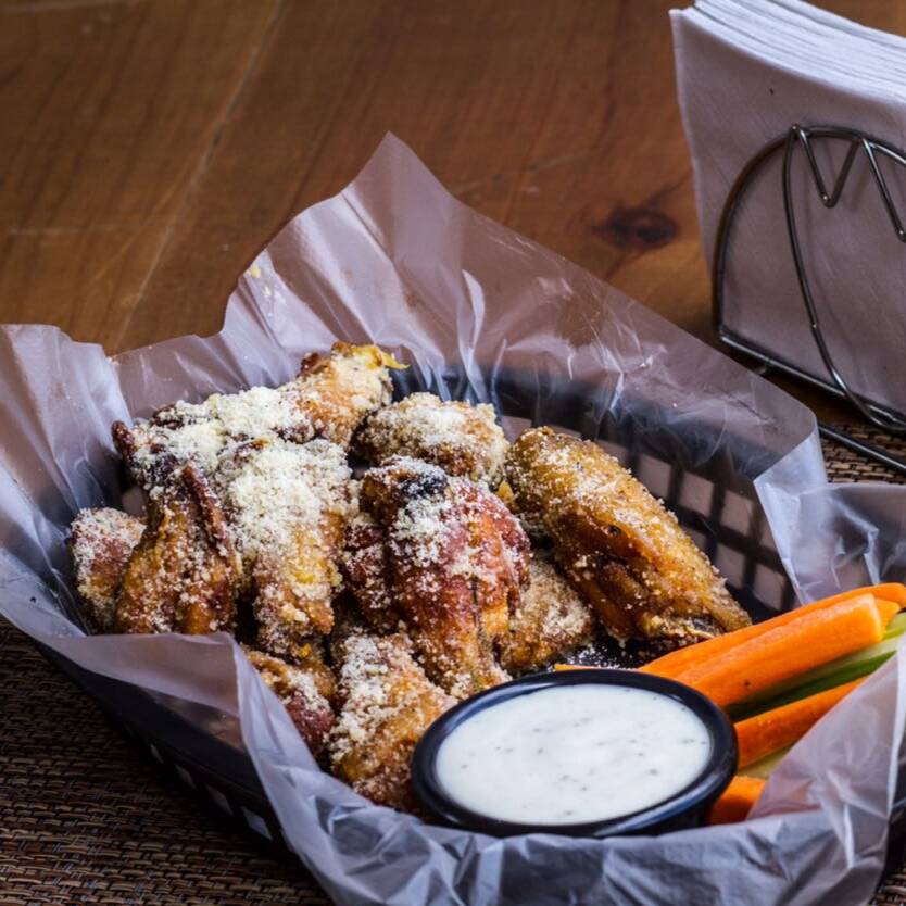 400 Gr. de alitas bañadas en queso parmesano, acompañados de vegetales y aderezo ranch.