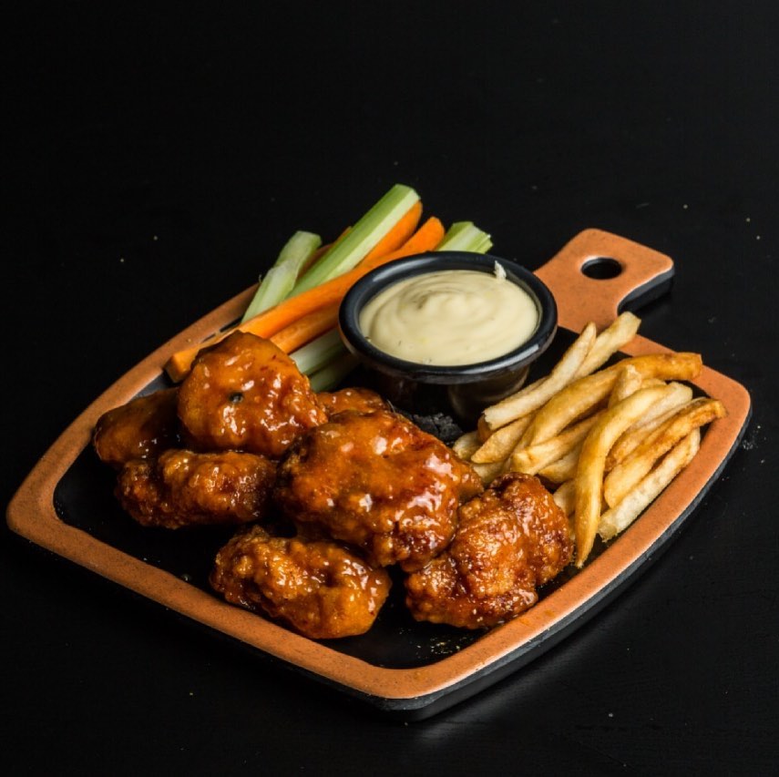 200 Gr. de boneless bañados en salsa búfalo, acompañados de ranch, vegetales.