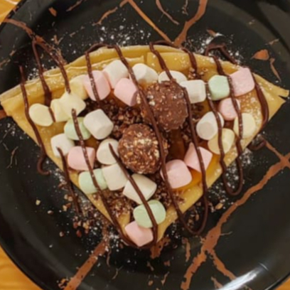 Deliciosa Crepa elaborada con 1 Jalea ó Mermelada con 2 Toppings, 1 Fruta y 1 Toppings Premium