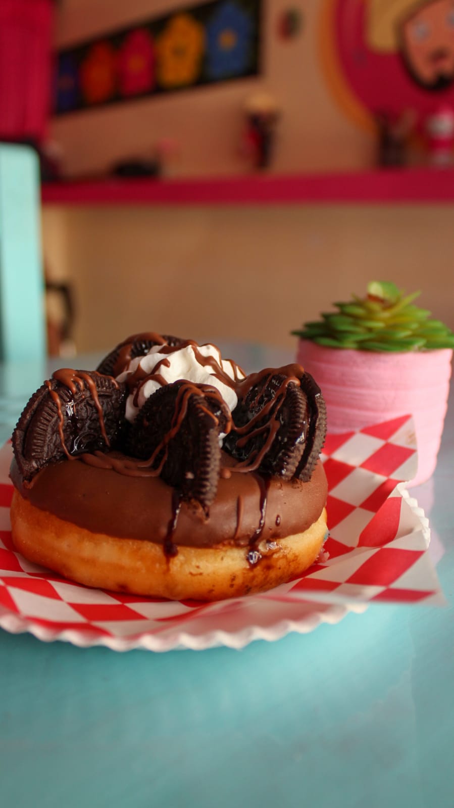 Bebida a base leche, helado de chocolate, barquillo, hershey's liquido y oreo.