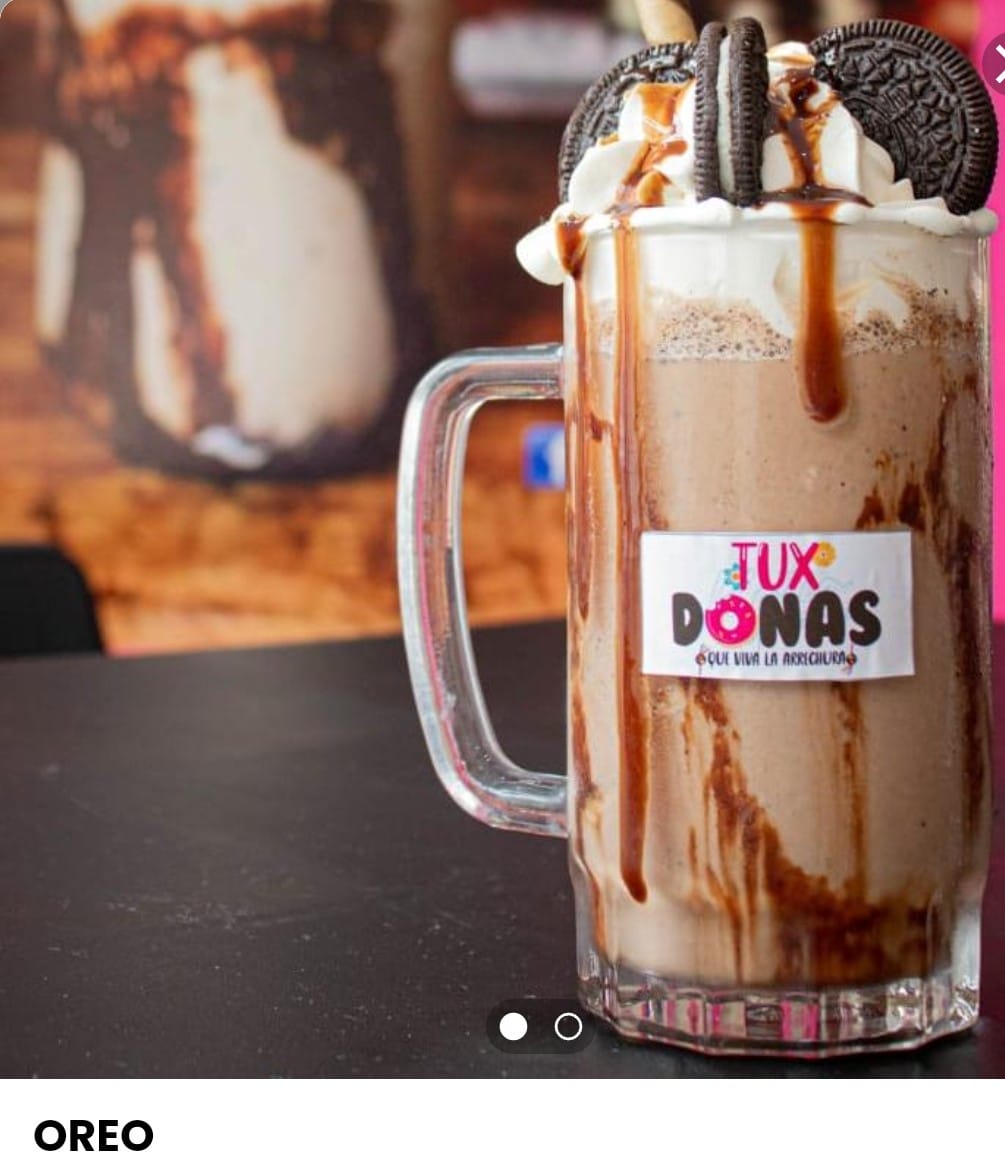 Bebida a base leche, hielo, barquillo, chantilly, hershey's liquido y oreo.