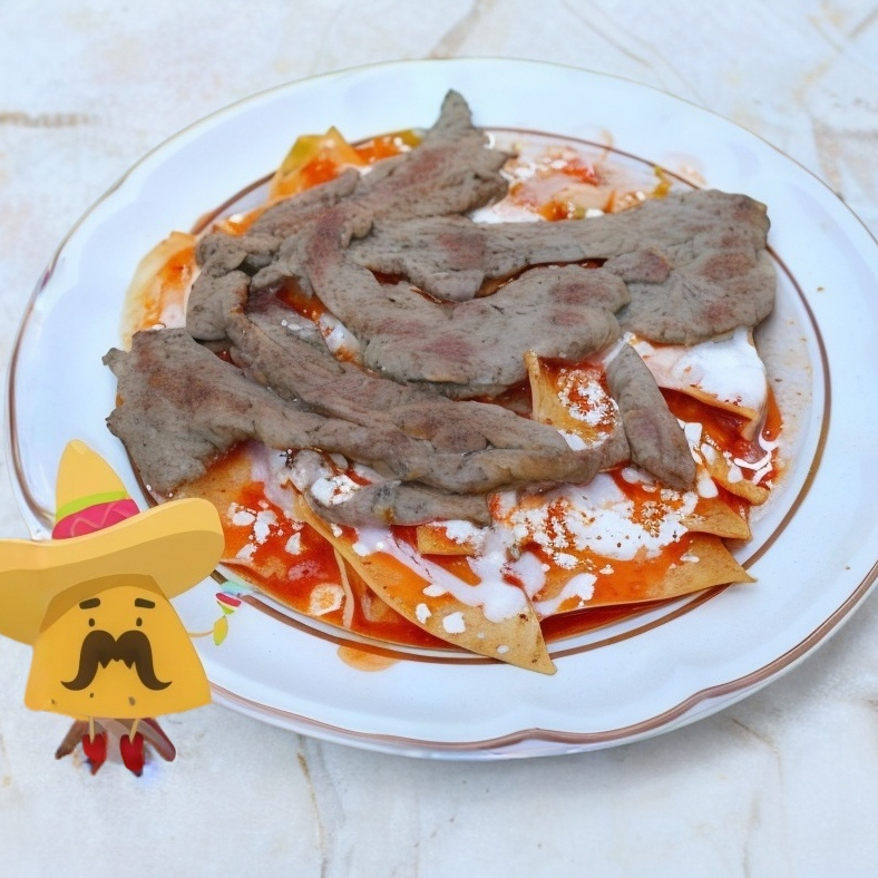 Chilaquiles con suave carne arrachera de res, la salsa de su preferencia, queso y crema chiapanecos y cebolla al gusto.
