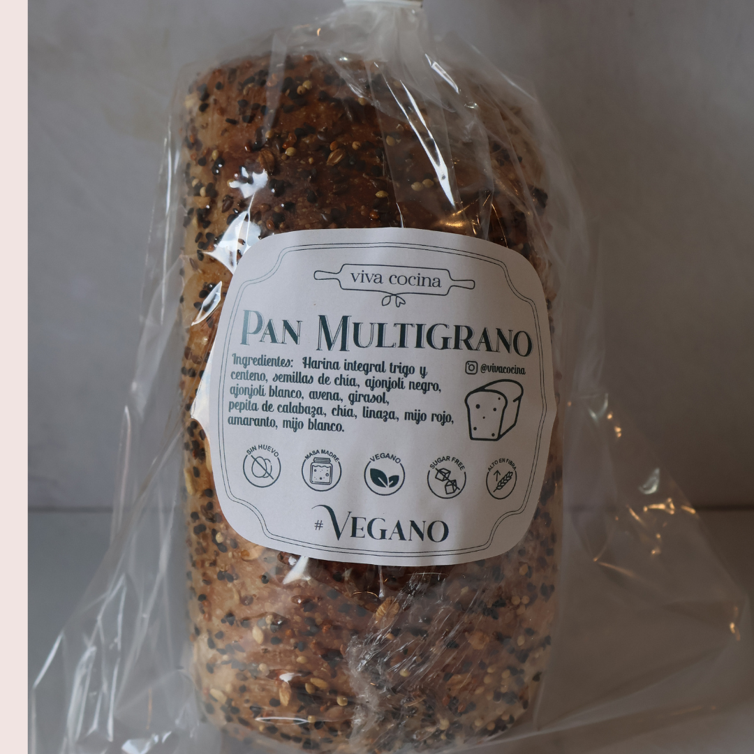 VEGANO // Ingredientes: Harina integral de trigo y centeno, semillas de chía, ajonjoli negro, ajonjoli blanco, avena, girasol, pepita de calabaza, chía, linaza, mijo rojo, amaranto, mijo blanco.