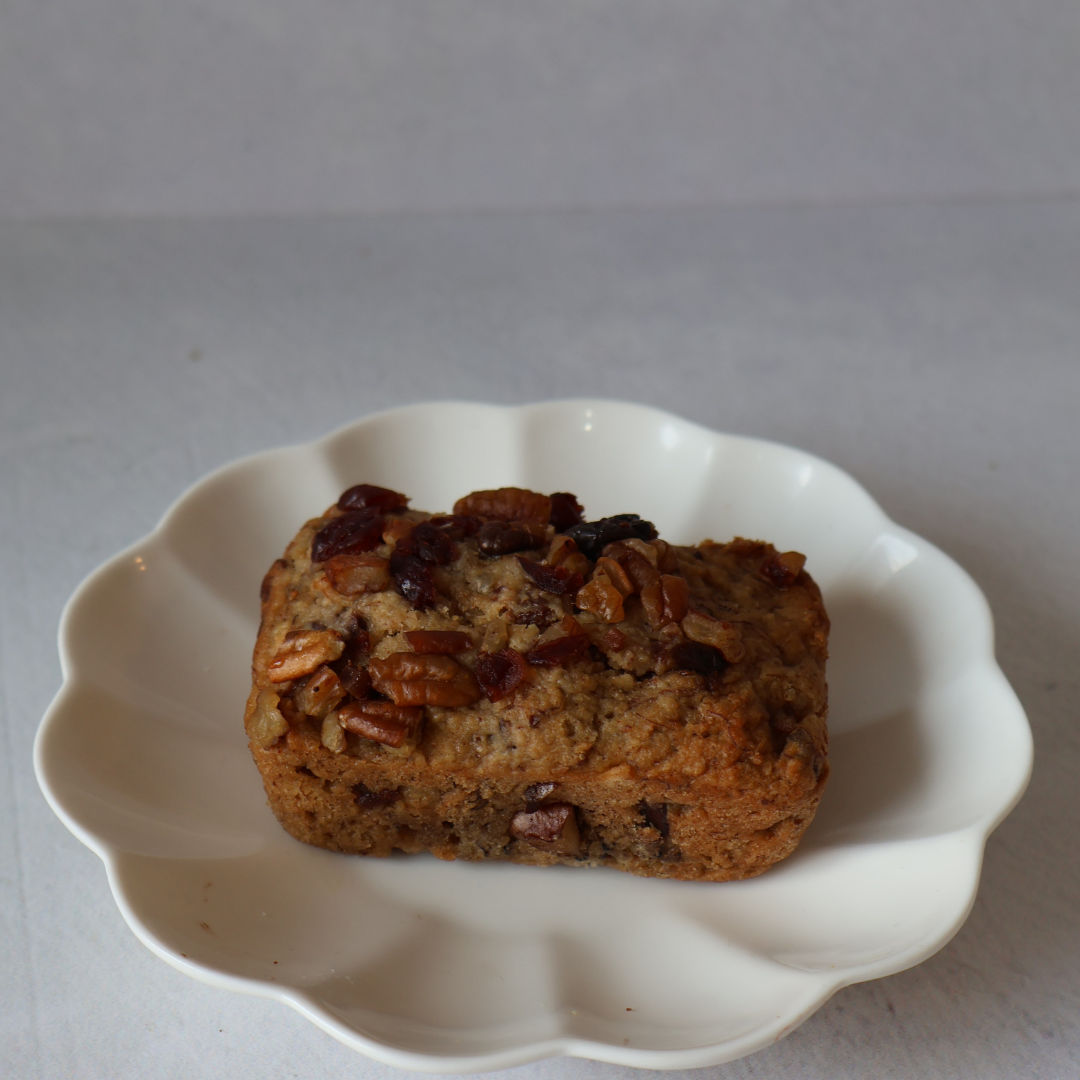 VEGANO // Ingredientes: Plátano, harina de almendras, aceite de coco, canela, nuez, frutos secos y linaza.