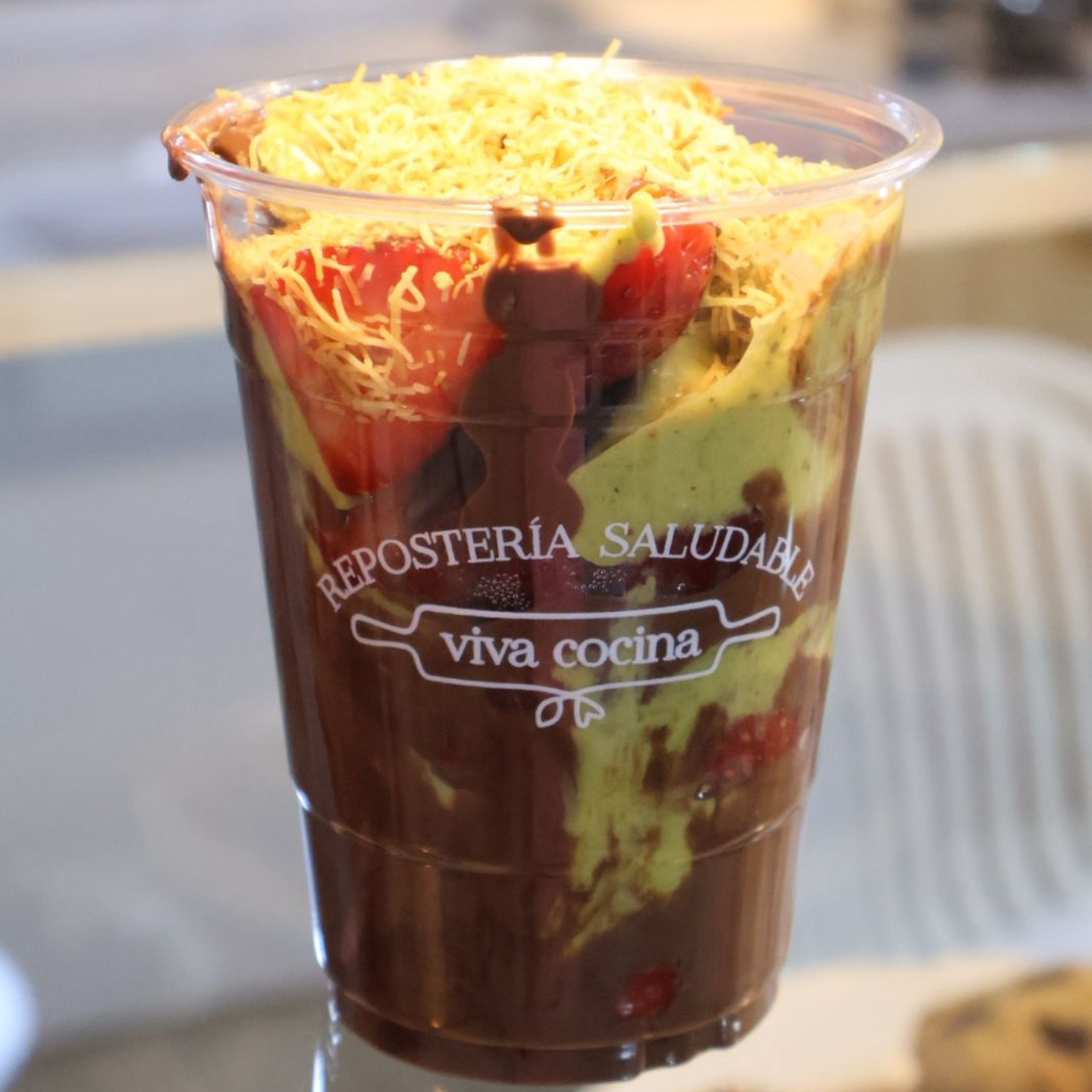 KETO // Bebida a base de fresa natural sin azúcar añadida, leche orgánica cremada y galletas keto trituradas.