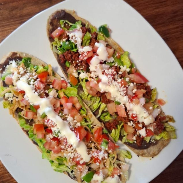 TORTILLA ARTESANAL, FRIJOLES,QUESO,CREMA , PICO DE GALLO, LECHUGA,MAYONESA