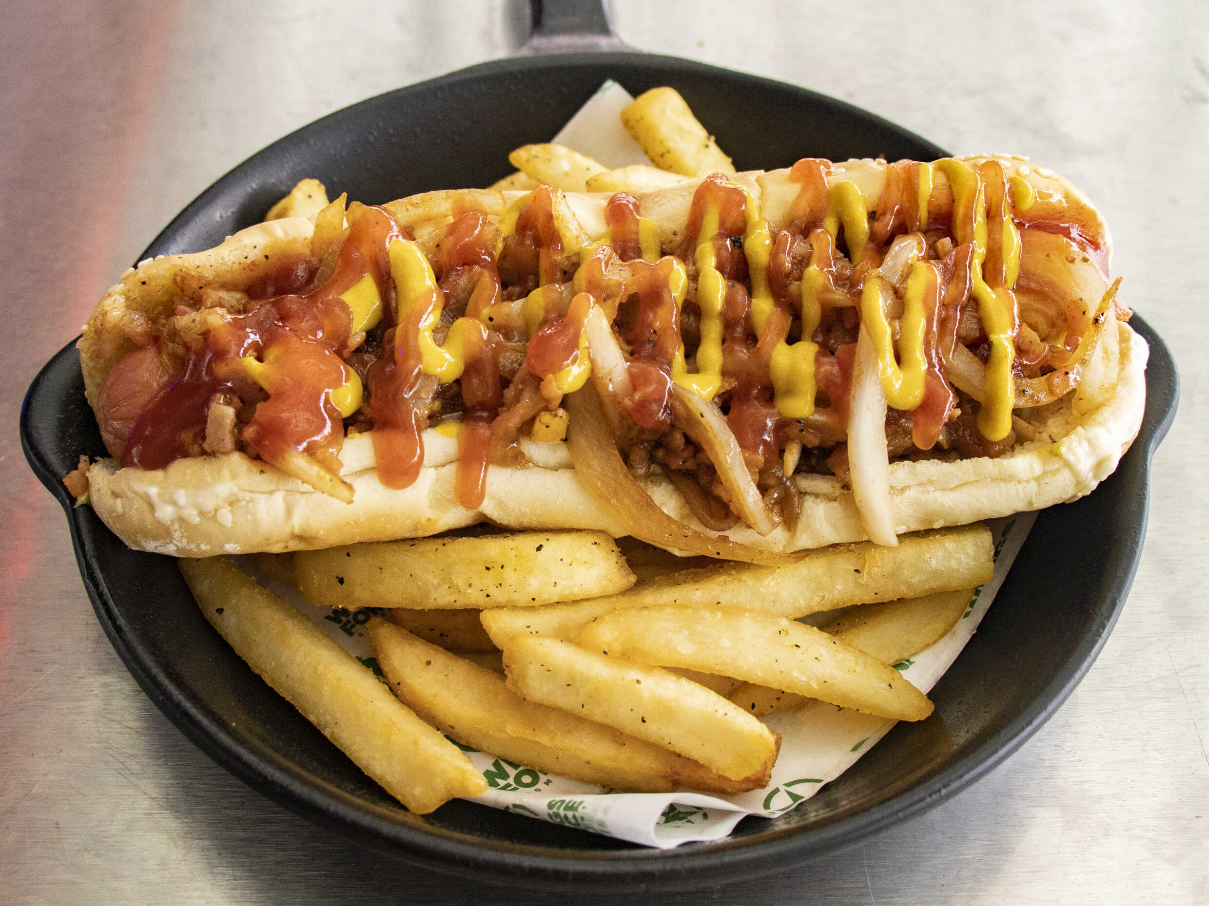 Extra large- puedes pedirlo con 2 sabores de salsas.
