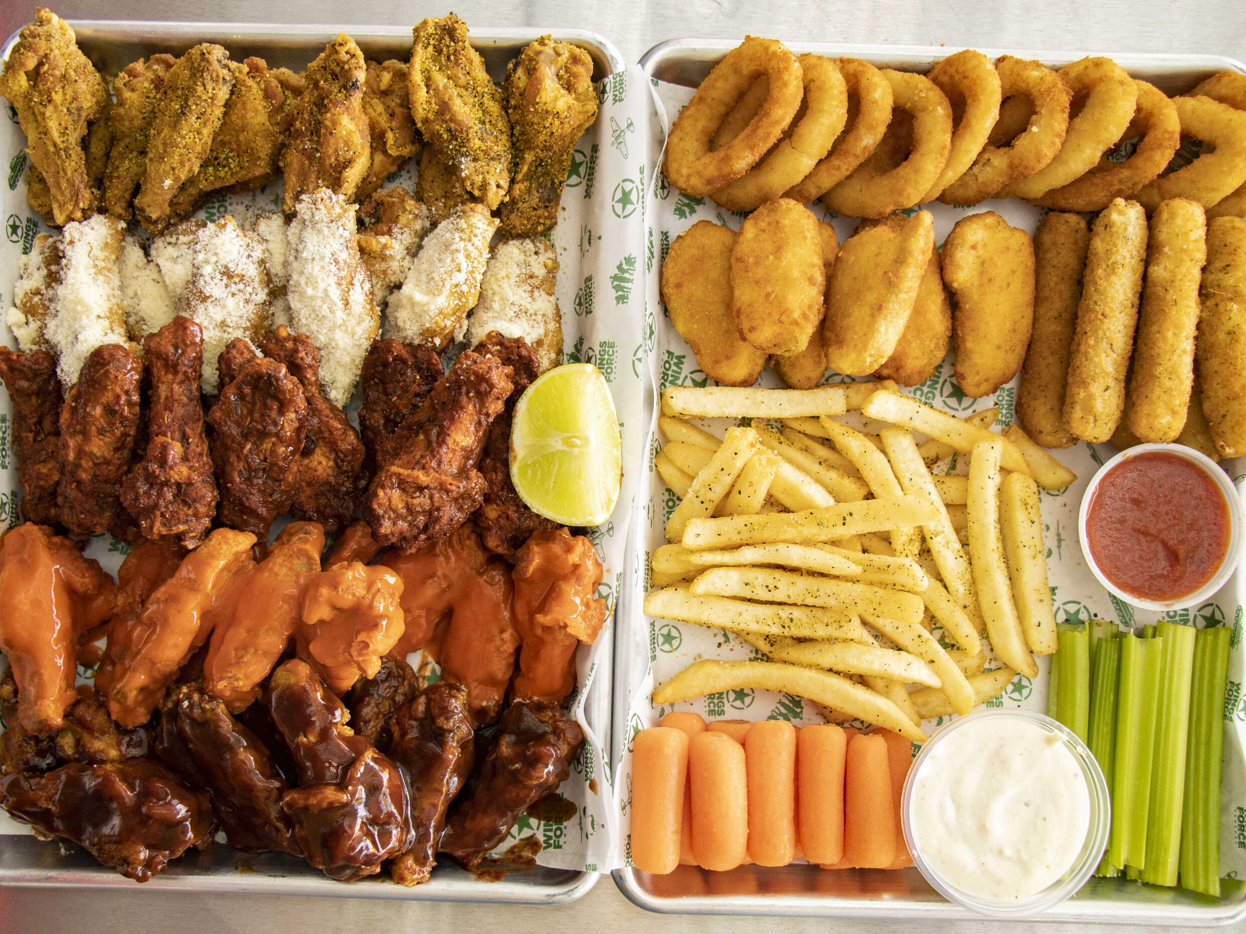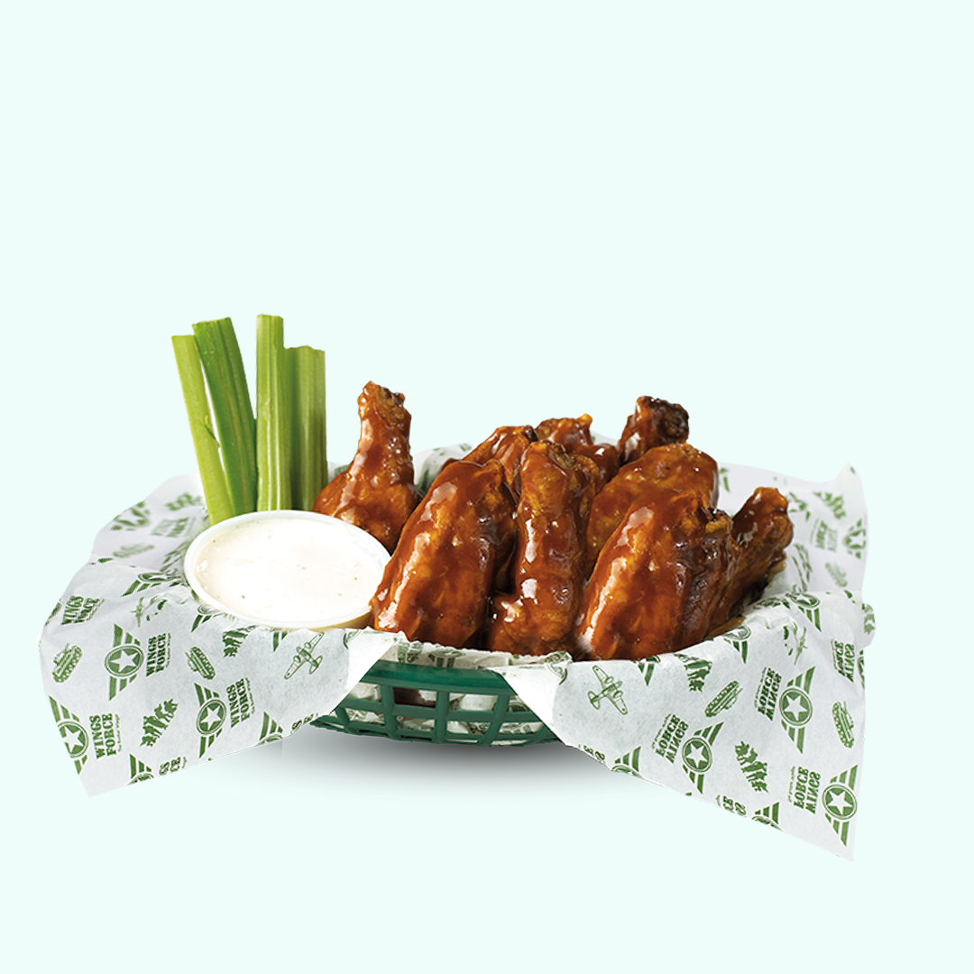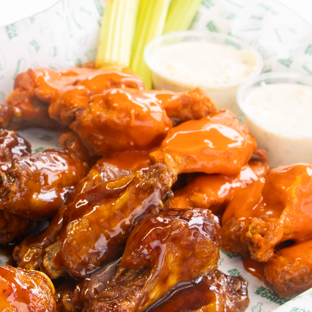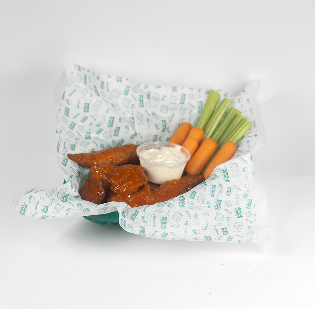 5 alitas diferentes + 5 alitas dulces + 5 alitas picantes+ 5 alitas BBQ+ 220g papas a la francesa + 250g tenders + vegetales + 1 aderezo 120ml