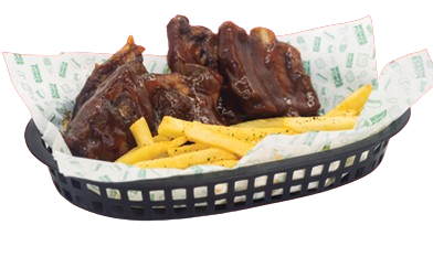 Costillas 250g + 5 pzas de alitas + papas a la francesa 220g.