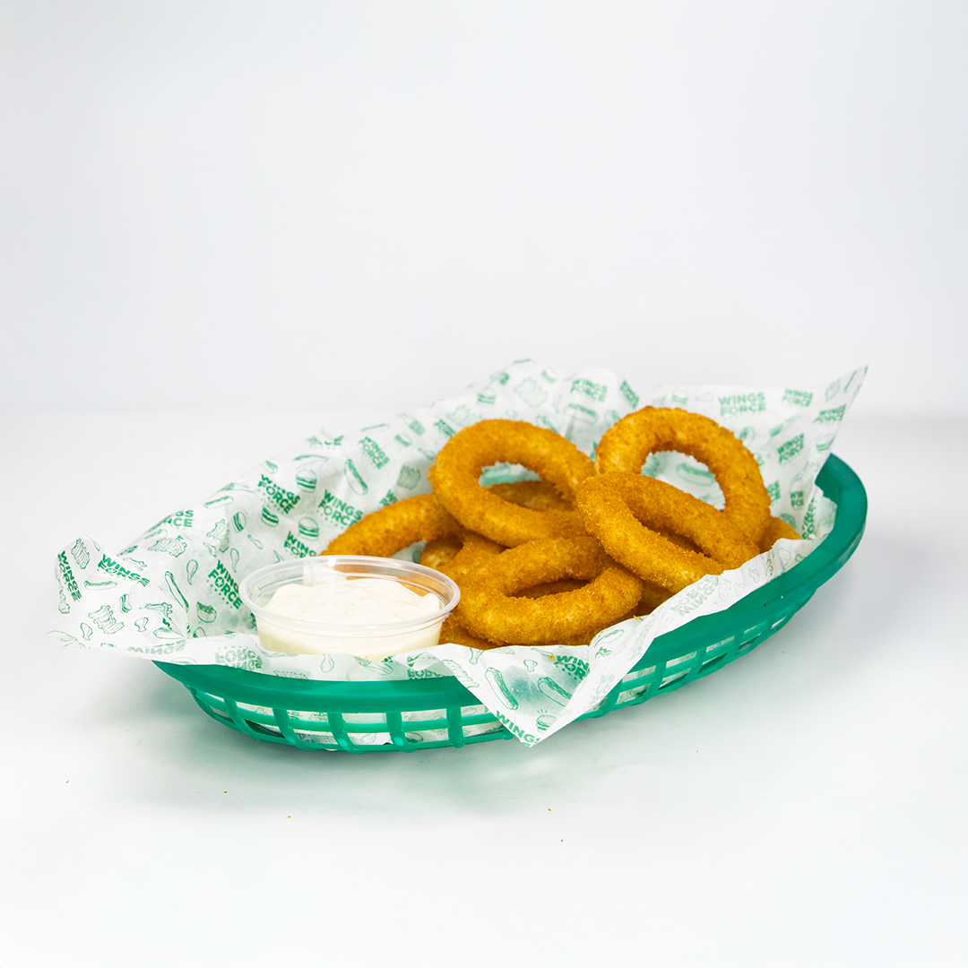 10 pzas de aros totalmente empanizados, acompañados de aderezo ranch, chipotle o salsa italiana