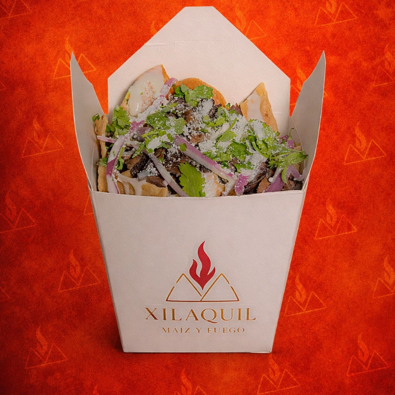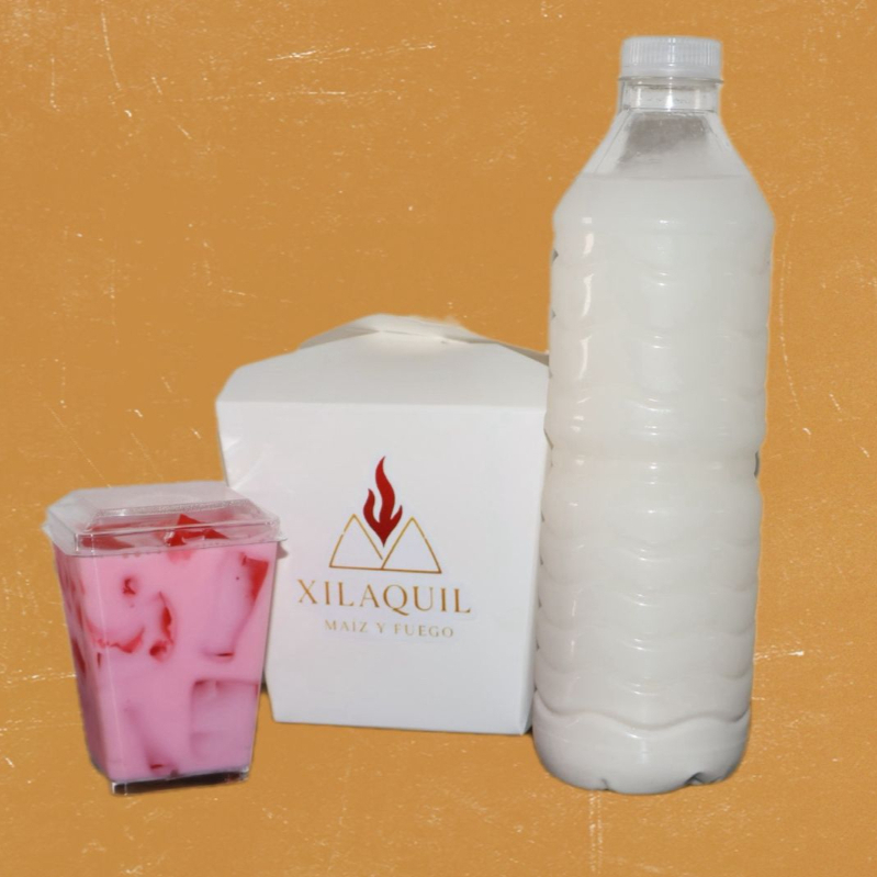 Incluye Xilaquil de asada, agua de 500 ml a elegir y gelatina de mosaico.
