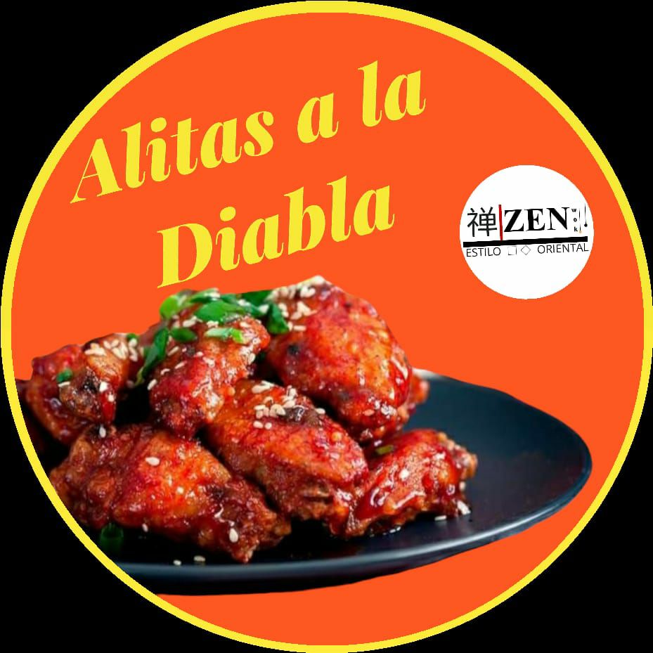 contiene 10 piezas de alitas bañado de salsa muy picante, acompañado de pepinos y zanahorias en tiras