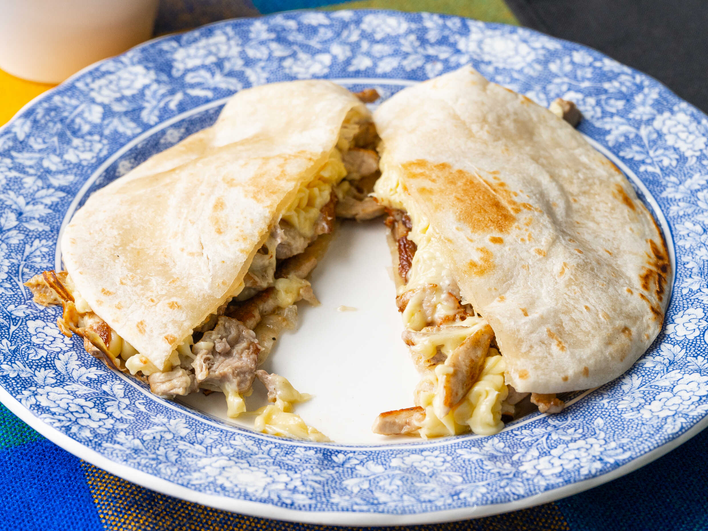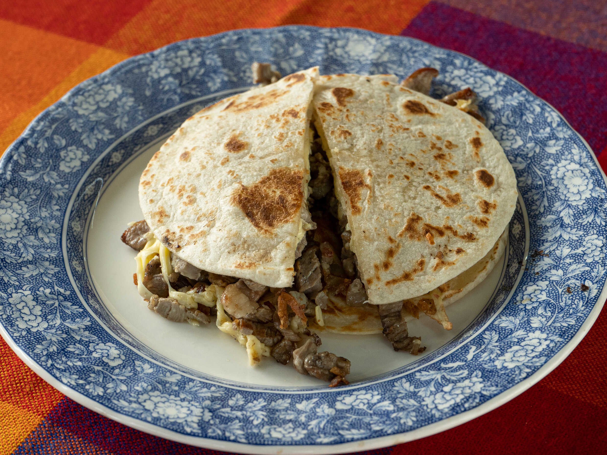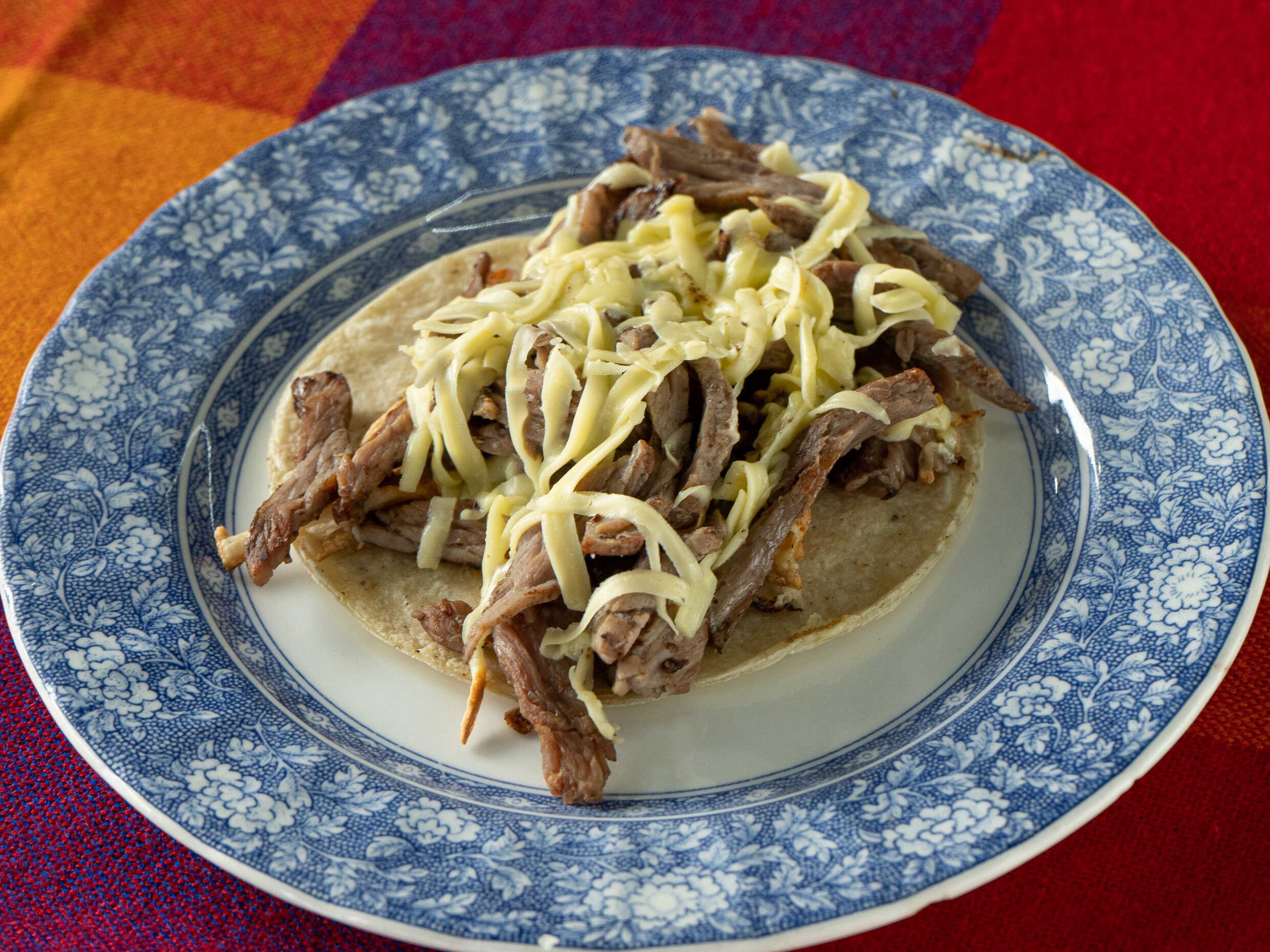Tortilla de harina, queso y carne.