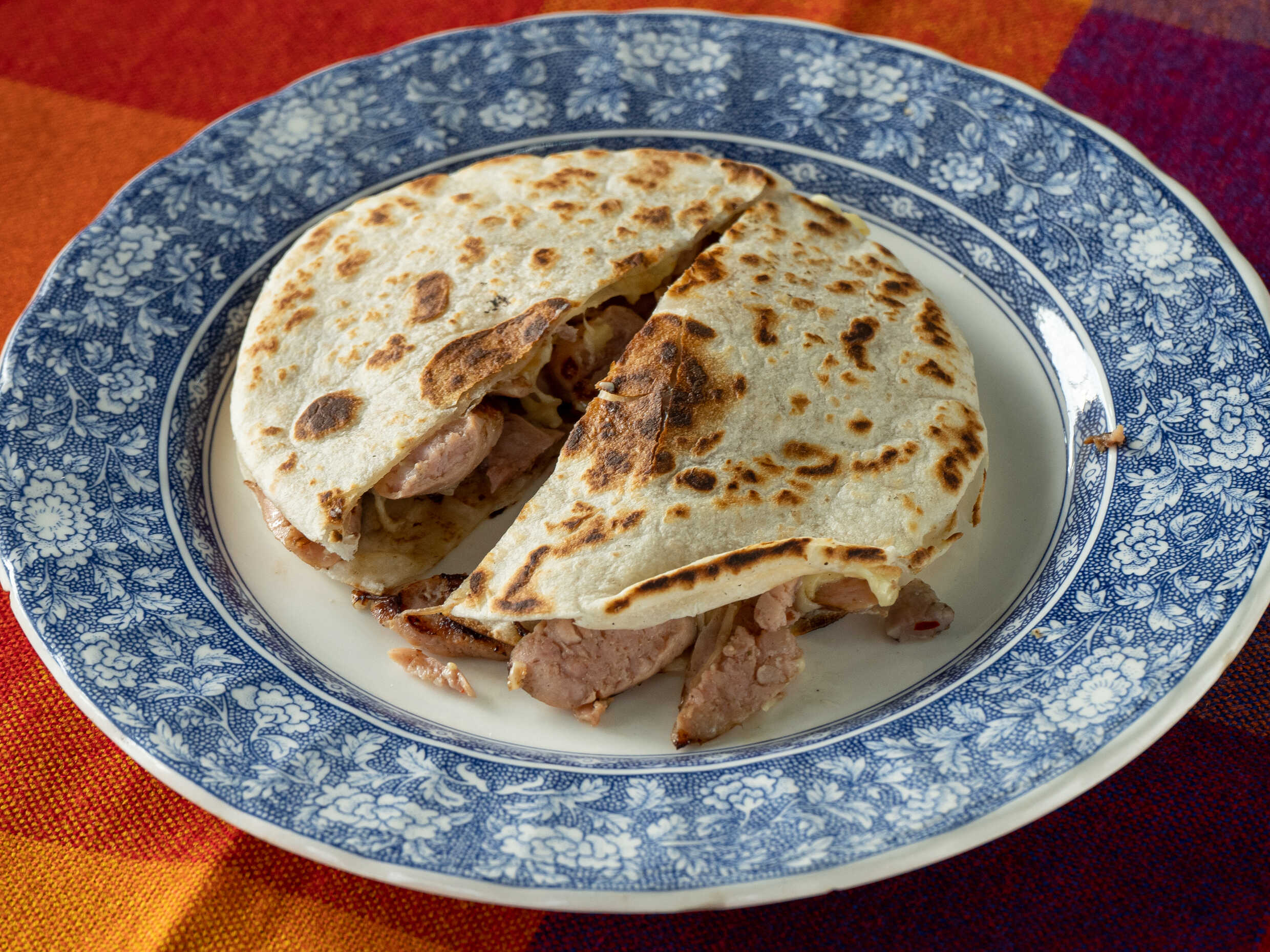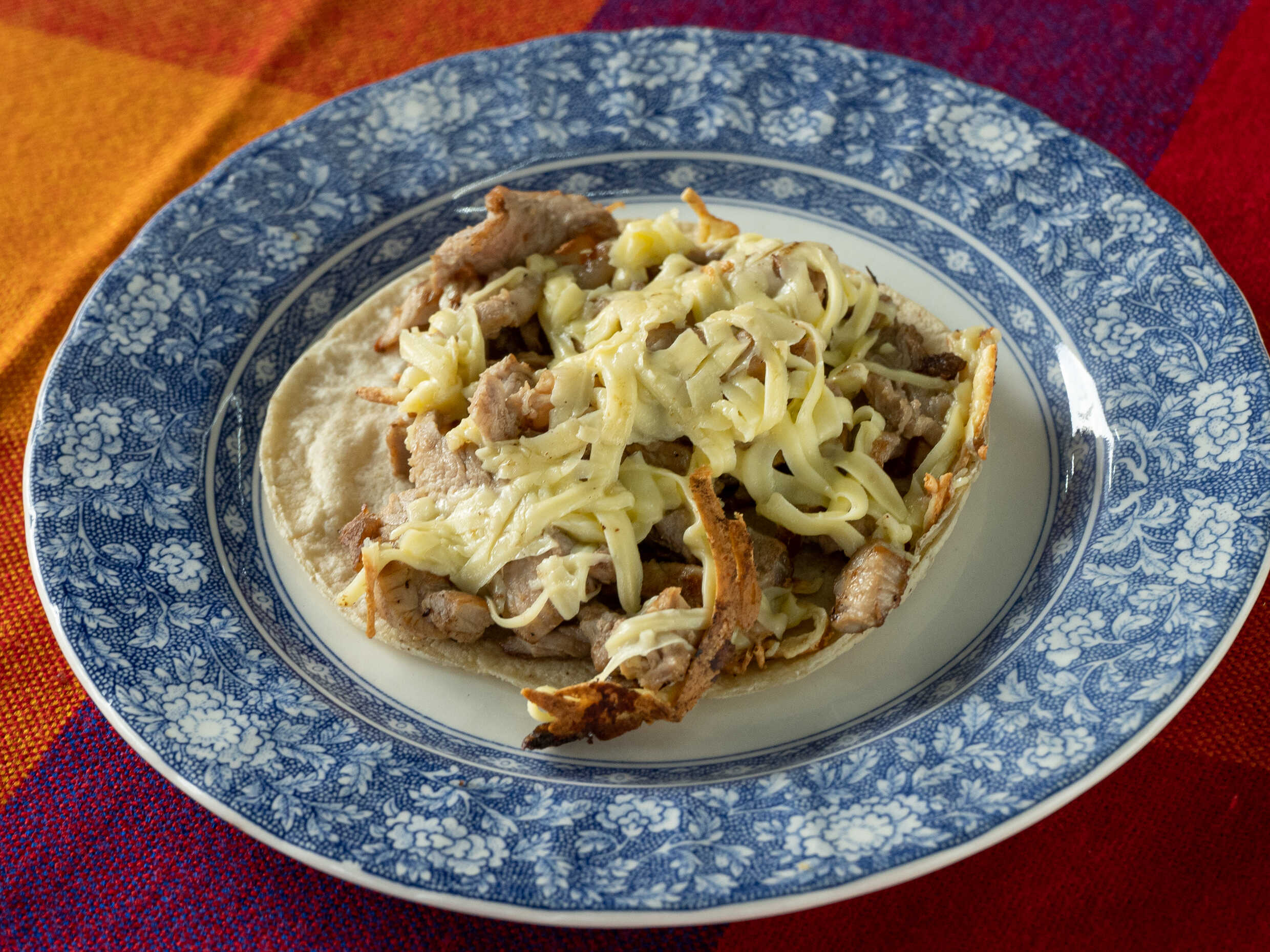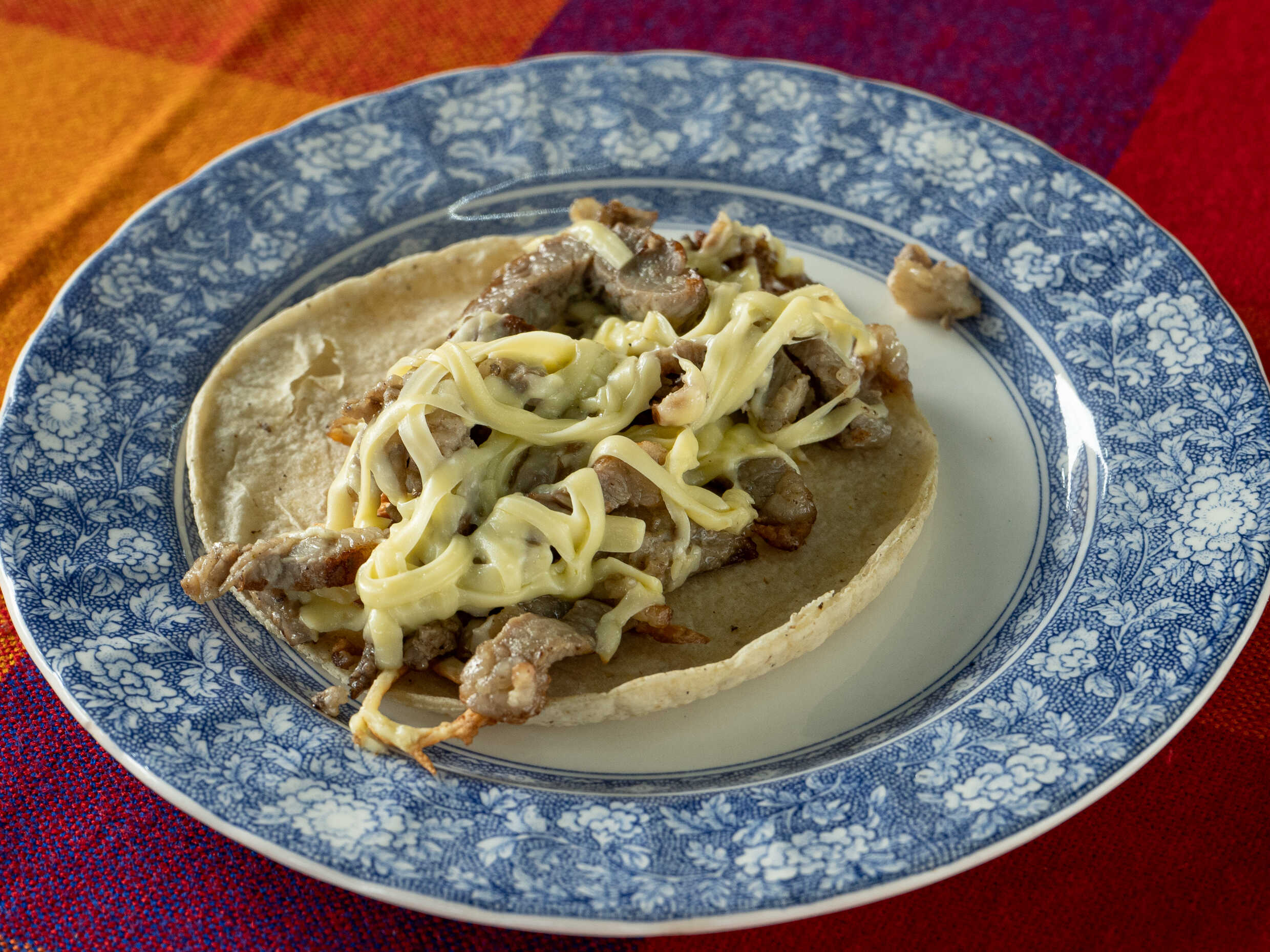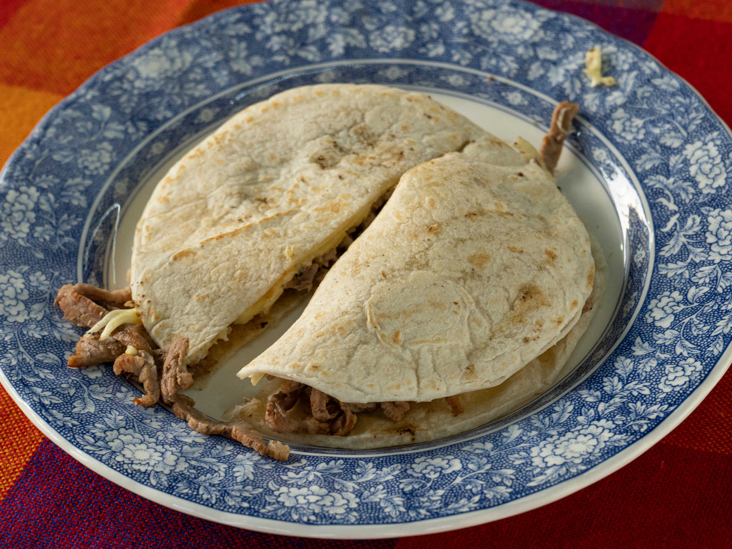 Tortilla de harina, queso y carne.
