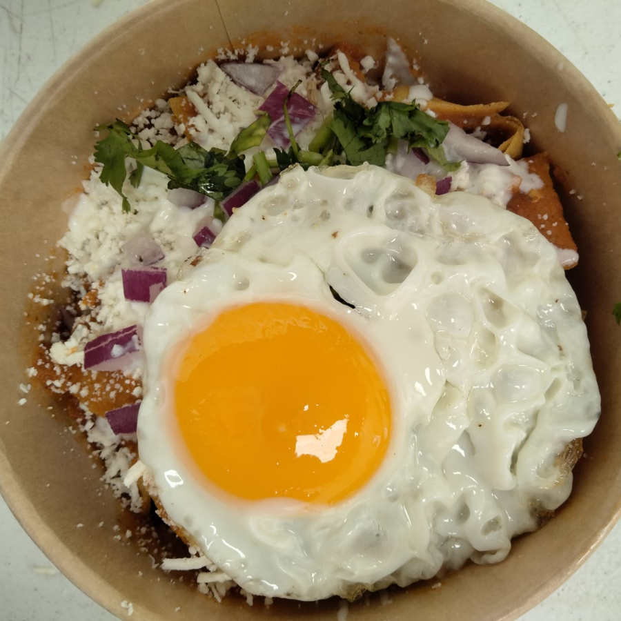 TOTOPO/HUEVO ESTRELLADO/SALSA/QUESO/CREMA/CEBOLLA/CILANTRO