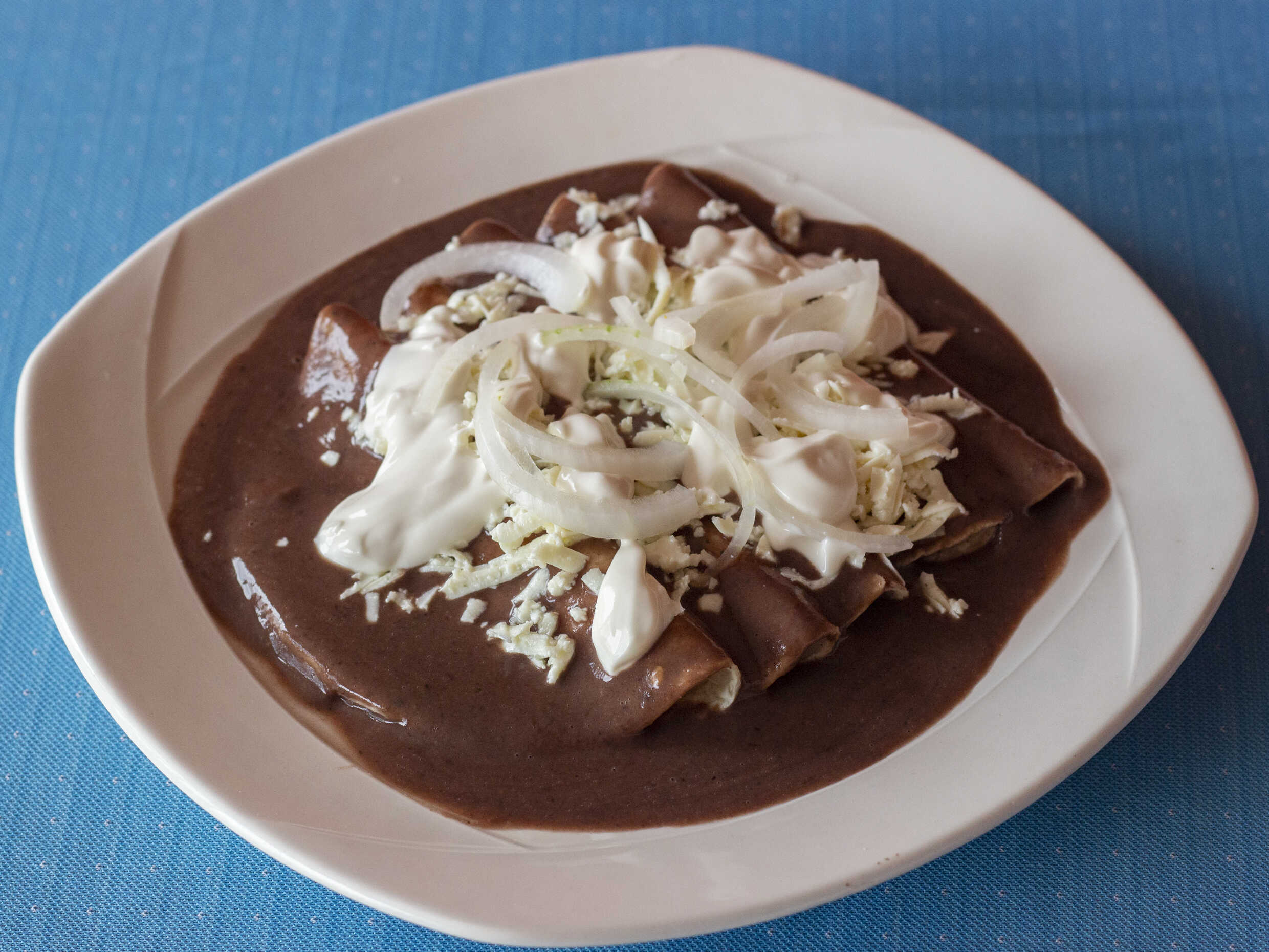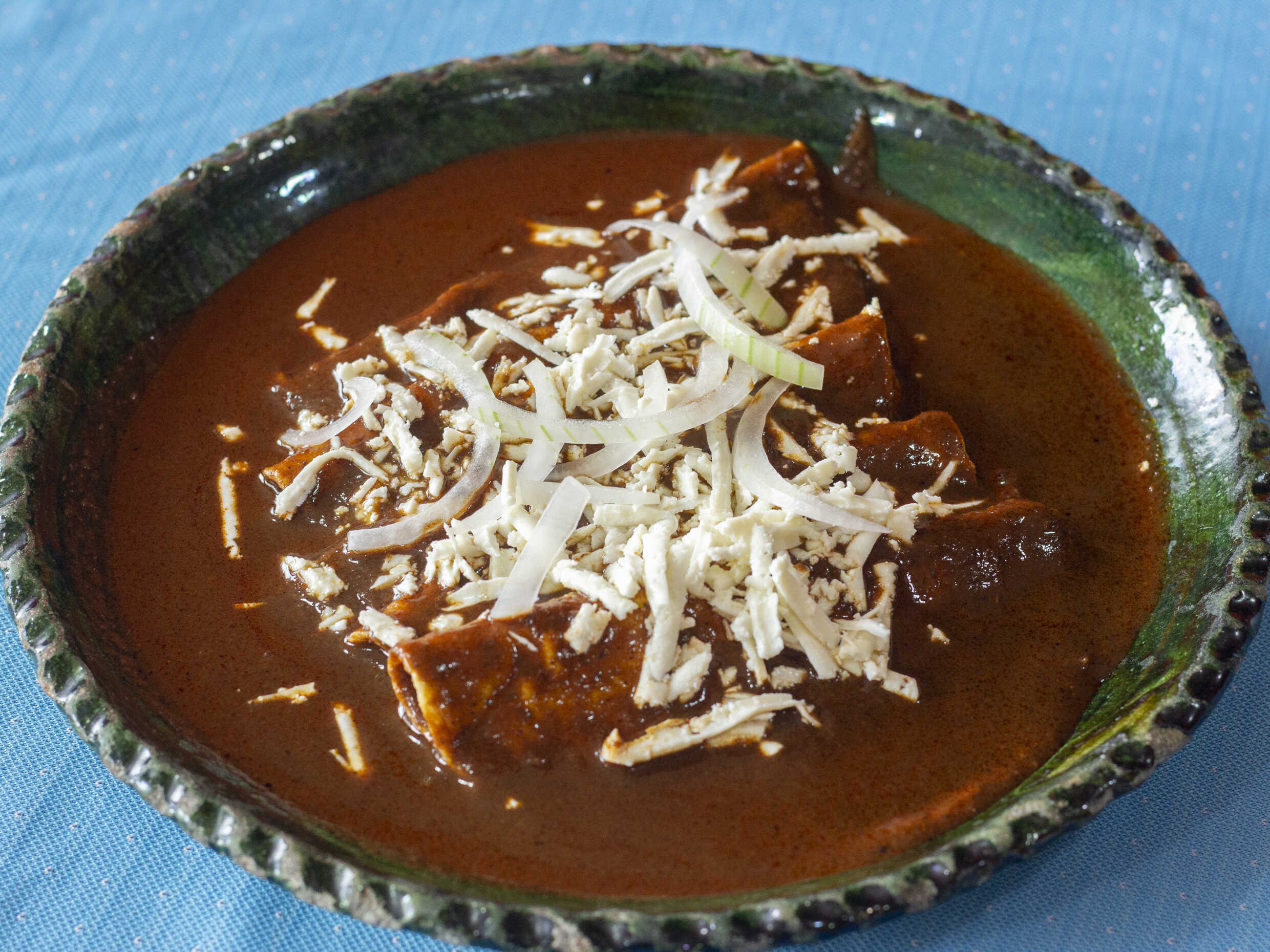 Enchiladas de mole con pollo.