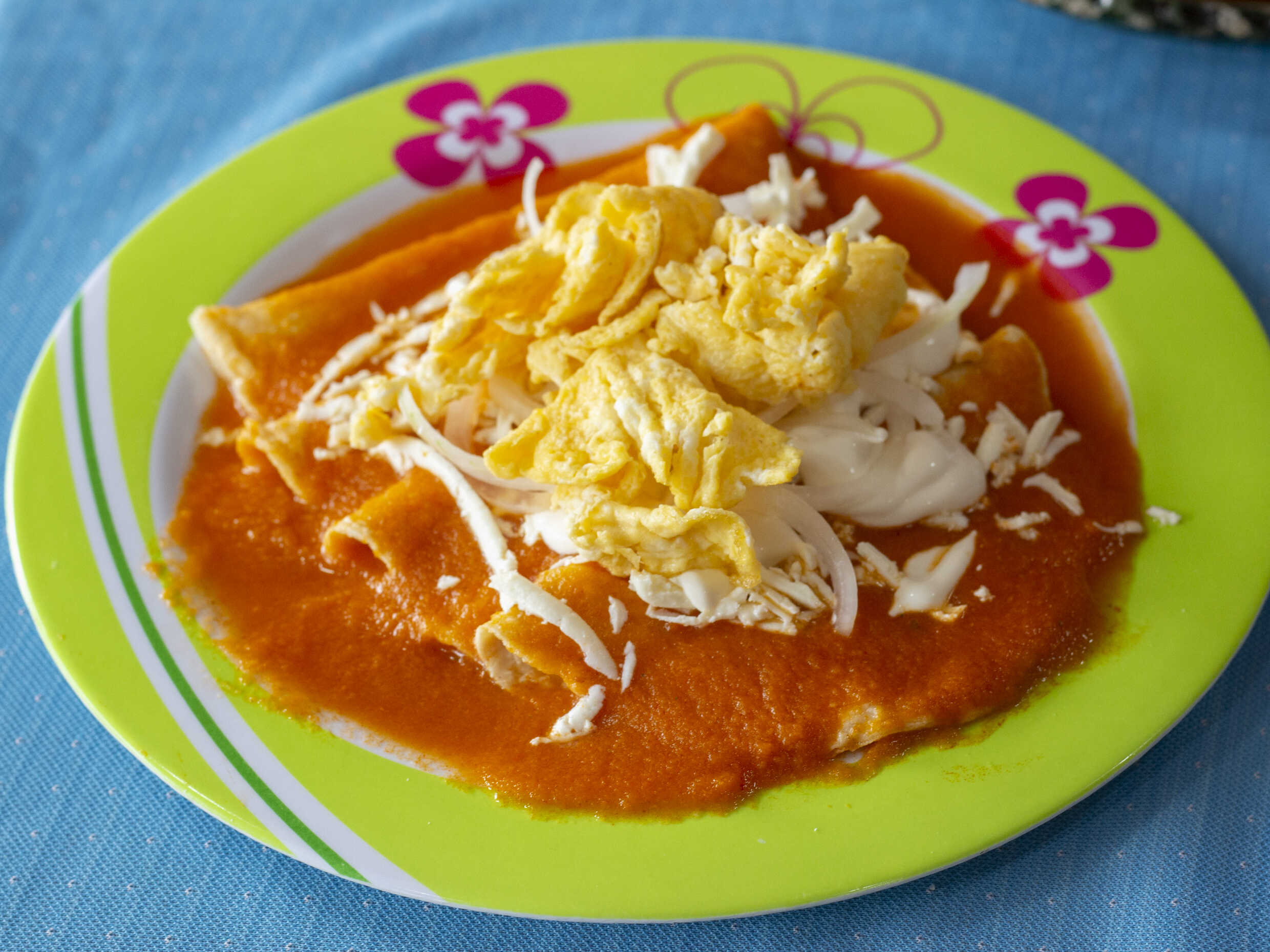 Enchiladas de mole con 2 huevos