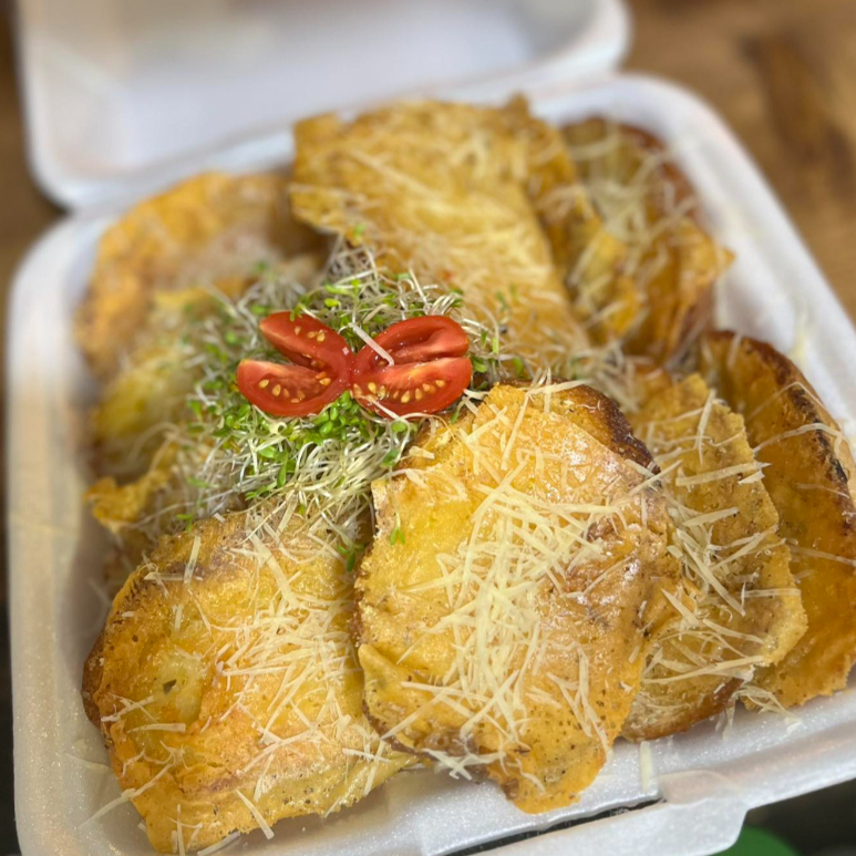 10 piezas de pan con mantequilla con ajo, parmesano y salsa macha