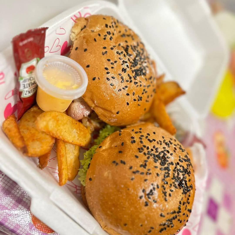 hamburguesa o nugetts + papas + jugo + galletas + dulces + juguete sorpresa