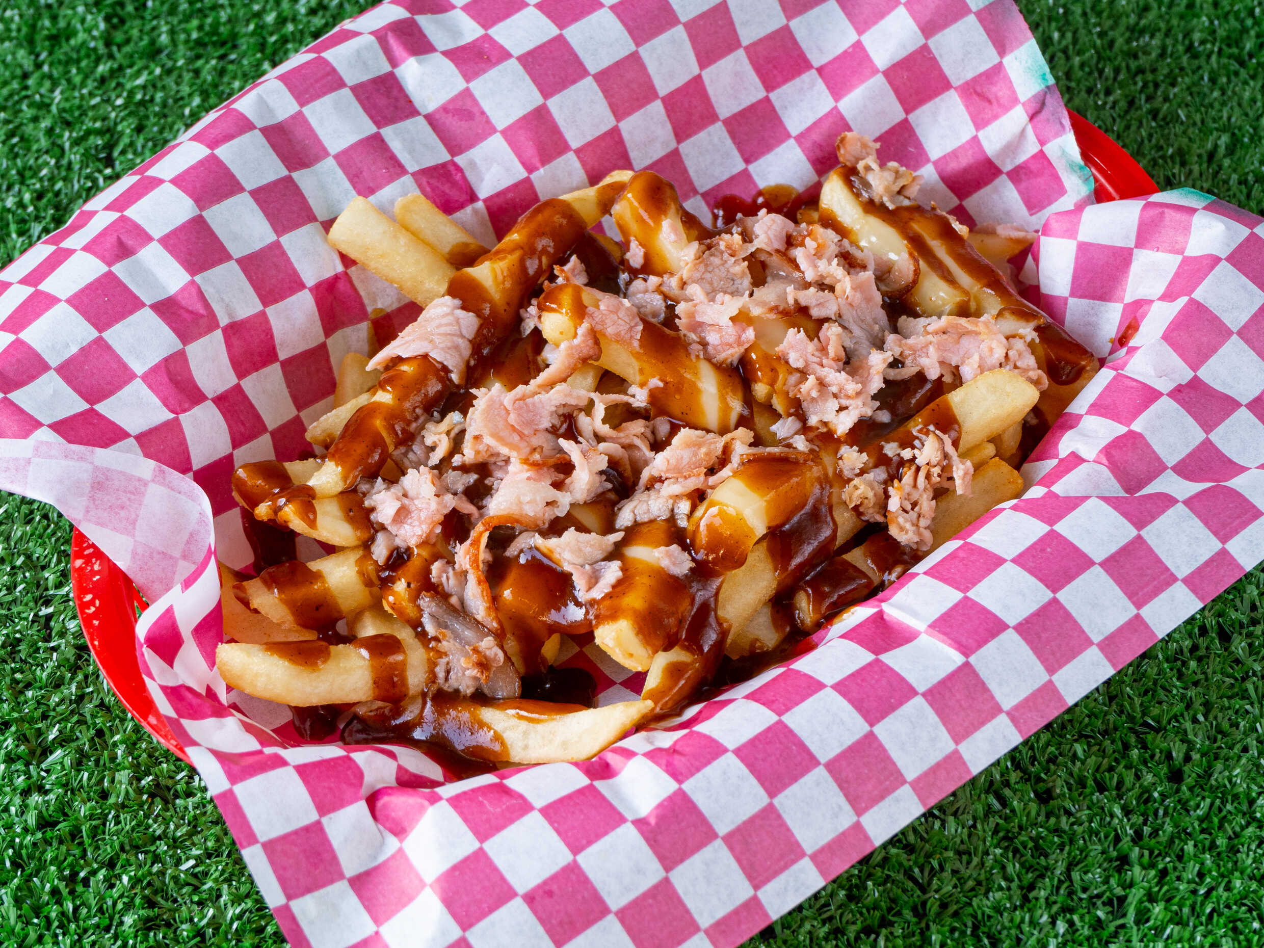 250 grs papas a la francesa con manchego tocino y BBQ.