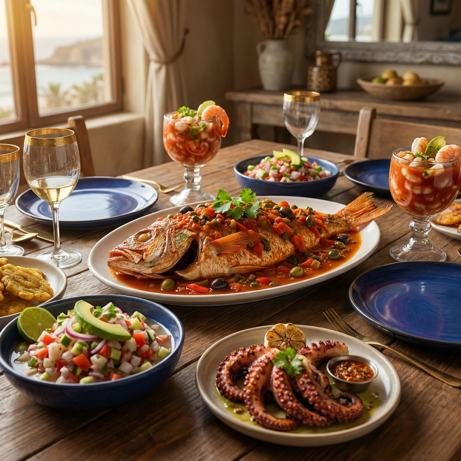Camarón, pulpo, caracol y pulpa de jaiba.