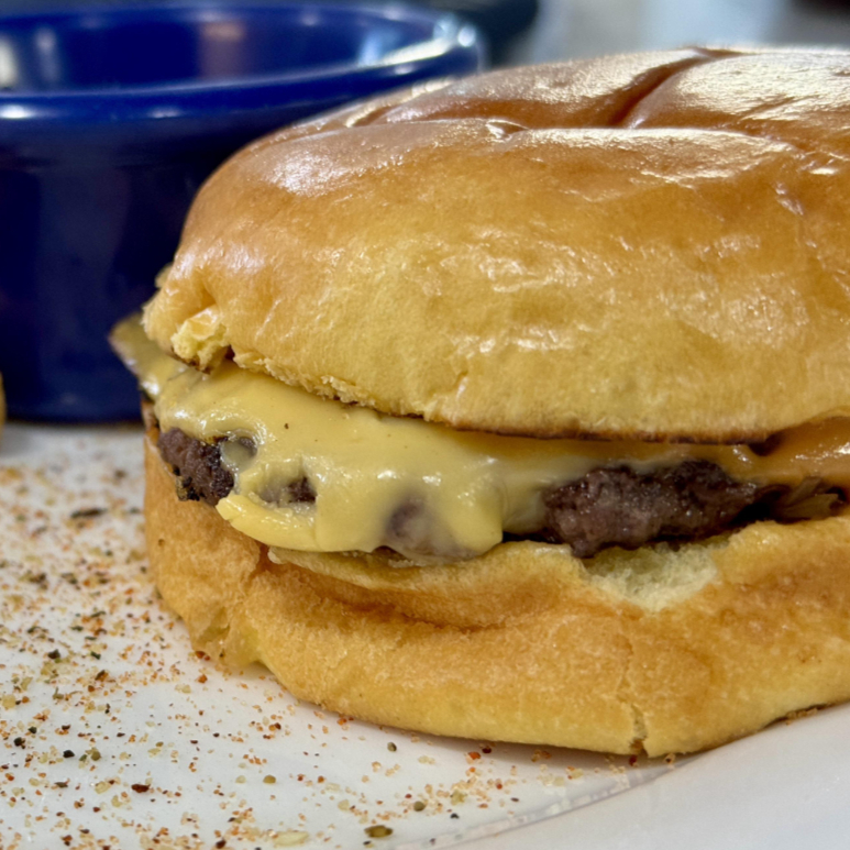 (USAMOS 100 GR DE CARNE DE RES 80/20 100% FRESCA) Pan clásico brioche, Carne de res, Queso mozzarella 100% leche de vaca. Incluye 100 grs de papas a la francesa. Mayonesa y Catsup aparte.