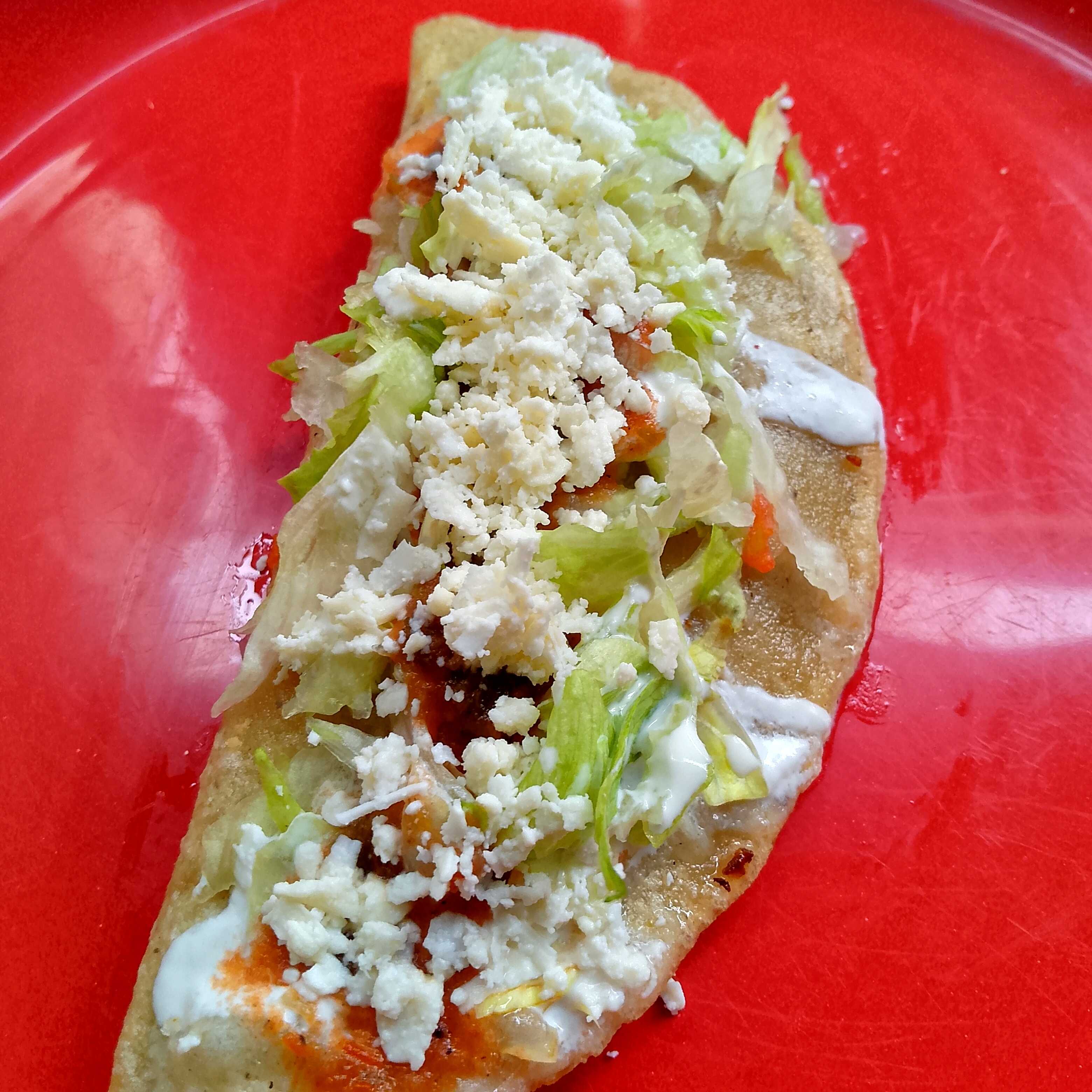 Deliciosa empanda con crema, queso, lechuga y tu guiso preferido