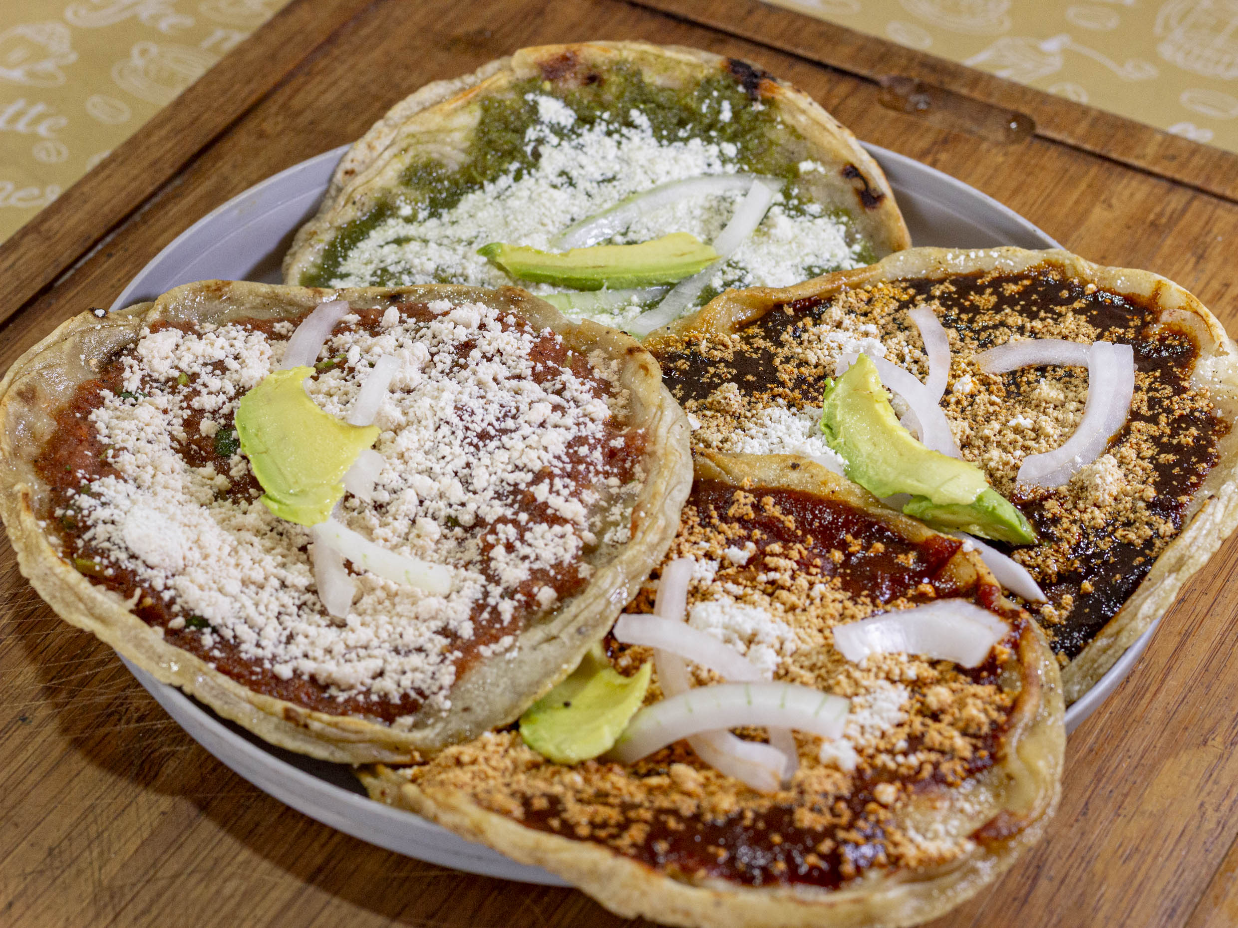 4 Tortillas suavecitas con salsa de tomate casera, ligerita pero sabrosa, con ese toque hogareño que conforta. Van acompañadas de queso, cebolla, aguacate y crema para un final cremoso y delicioso. Un platillo sencillo cálido y perfecto para cualquier antojito del día.