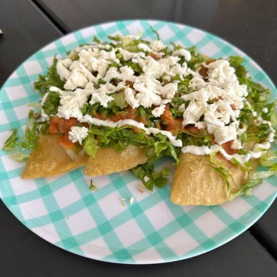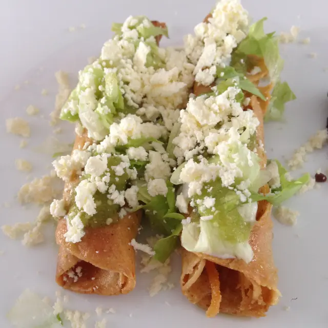 4 tortillas suavecitas rellenas del guiso de su preferencia; con salsa de tomarte casera, ligera y bien sabrosa.Con queso, cebolla, aguacate y crema; para un toque cremoso. Un clásico mexicano, hecho con cariño, perfecto para un antojo llenado y reconfortante.