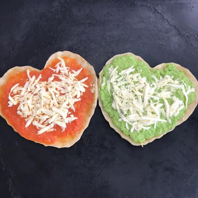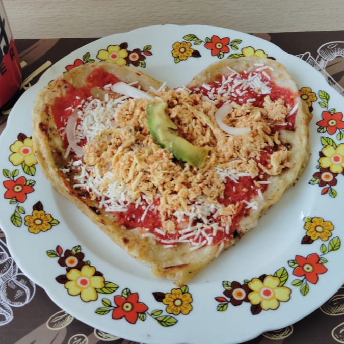 Gordita en forma de corazón; hecha al momento, con la salsa de su preferencia y queso rallado; crujiente por fuera, suavecita por dentro y con el sabor que apapacha el corazón