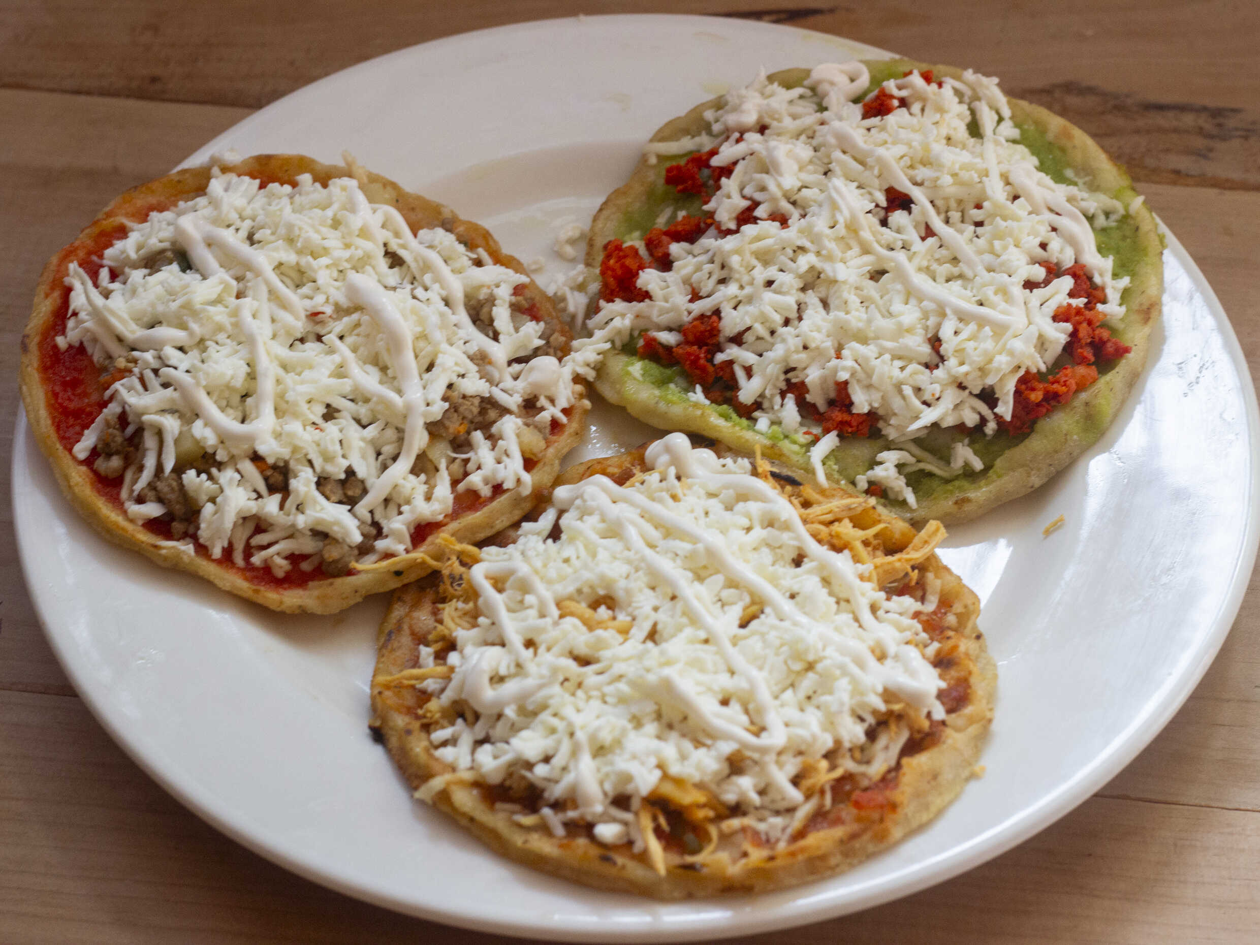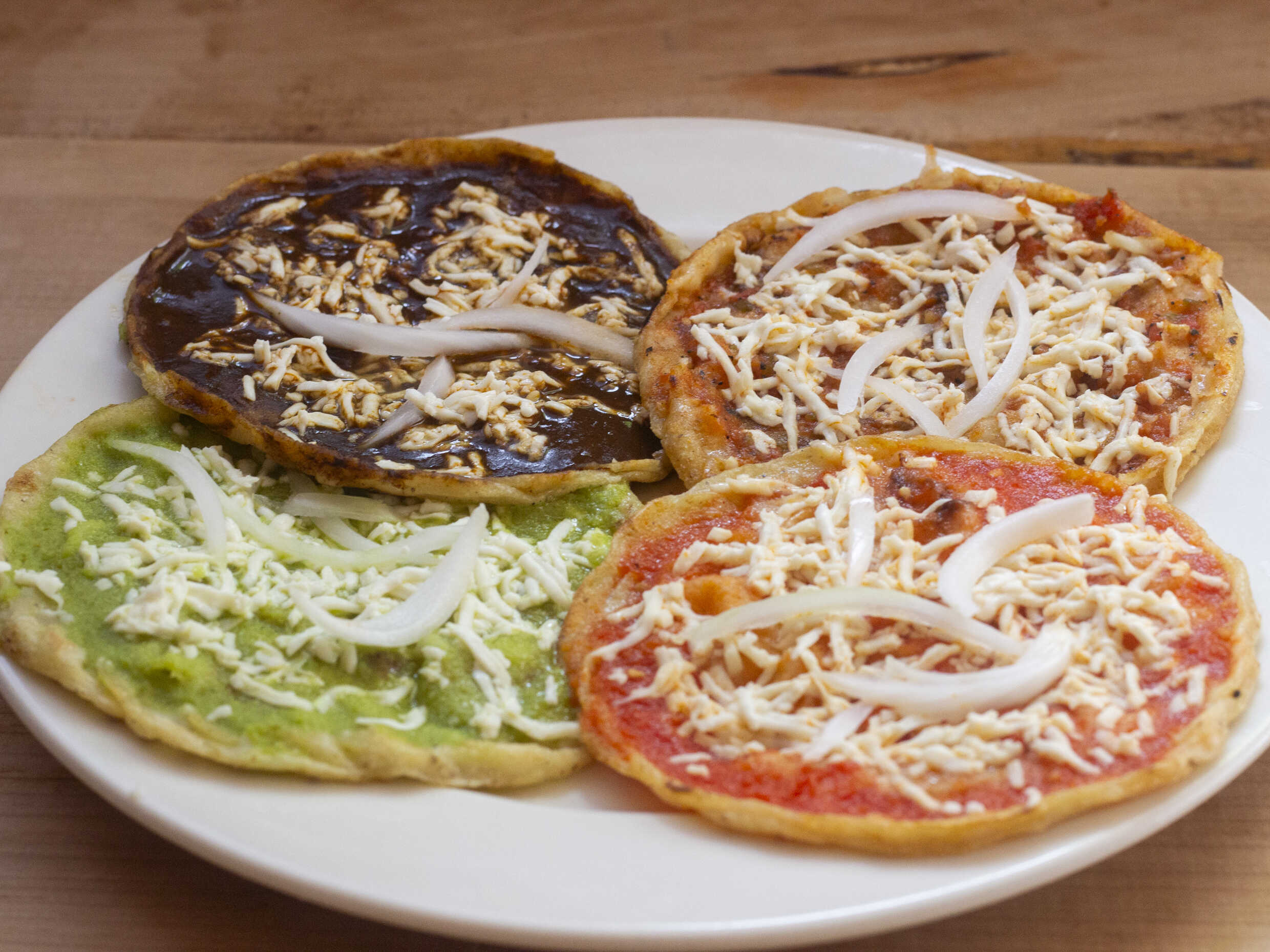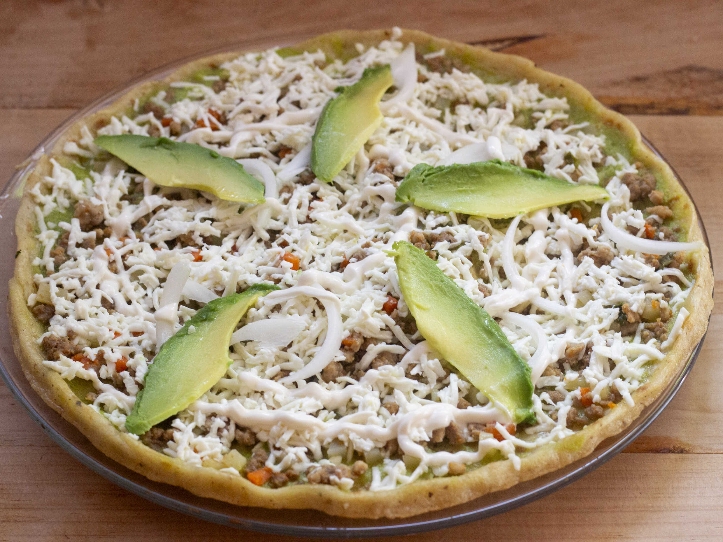 Picada sencilla preparada con salsa cebolla y queso. Plato personal