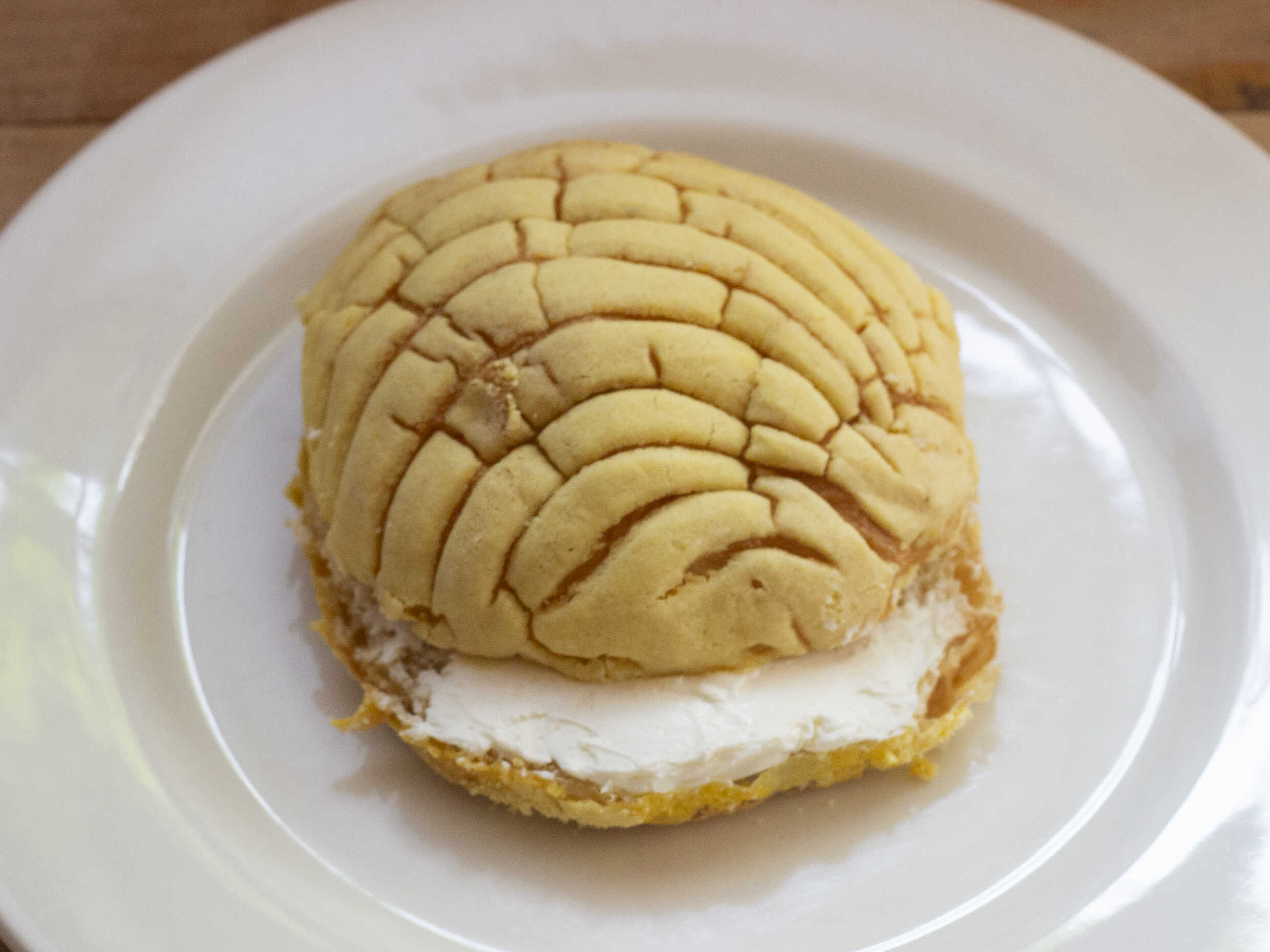 Concha de vainilla rellena de queso crema.