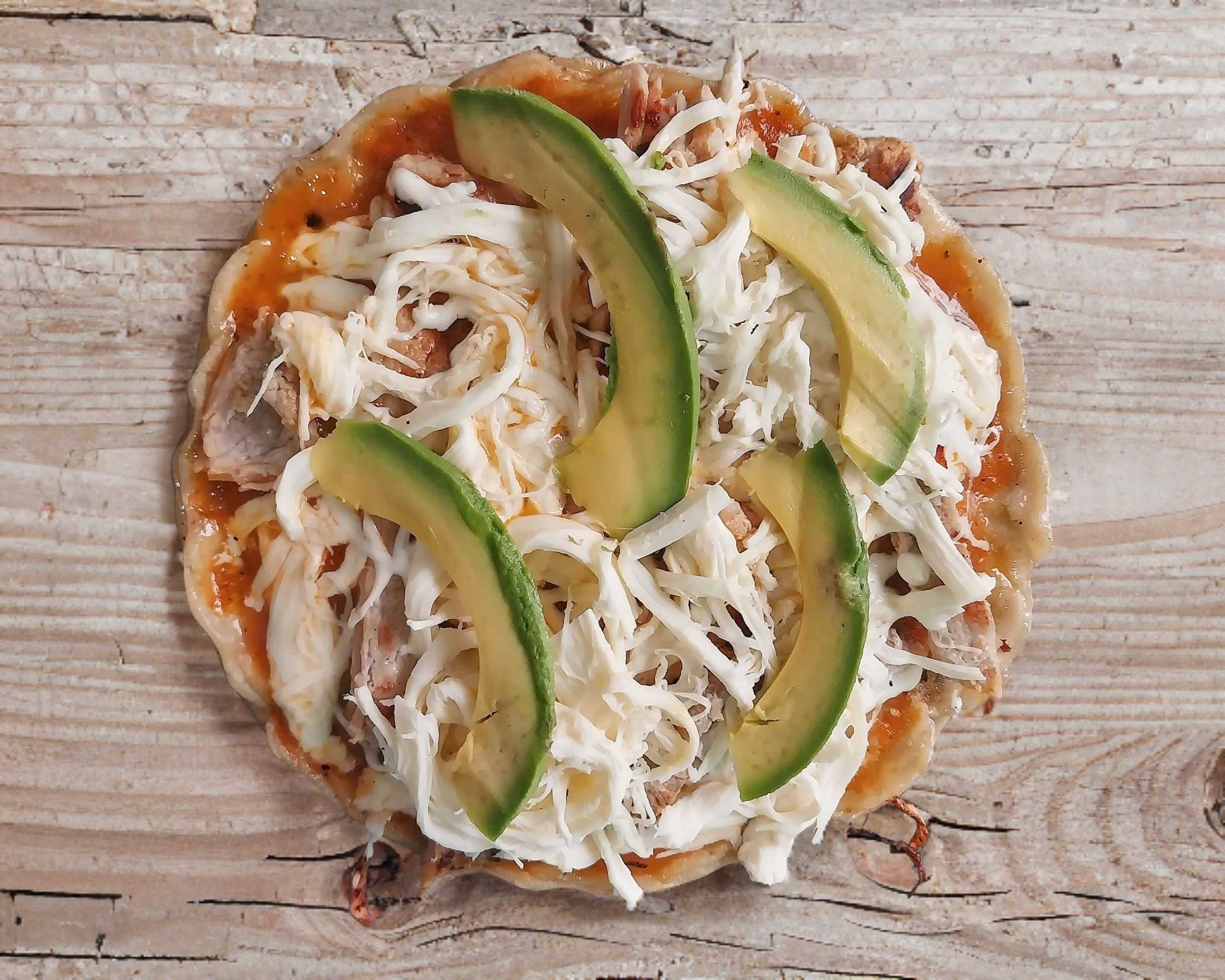 1 pieza tortilla de maíz,acompañada de salsa a elegir ingrediente a elegir queso de hebra y aguacate