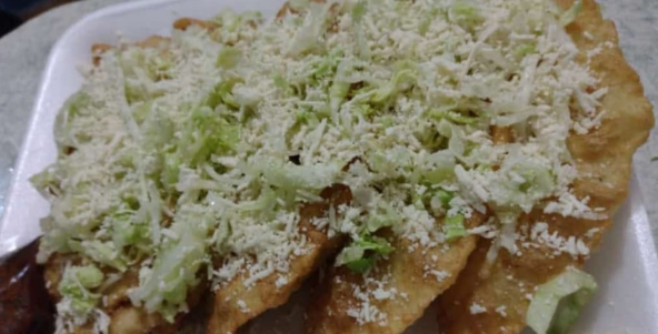 Empanadas con ingrediente a elegir acompañados de crema, lechuga y queso