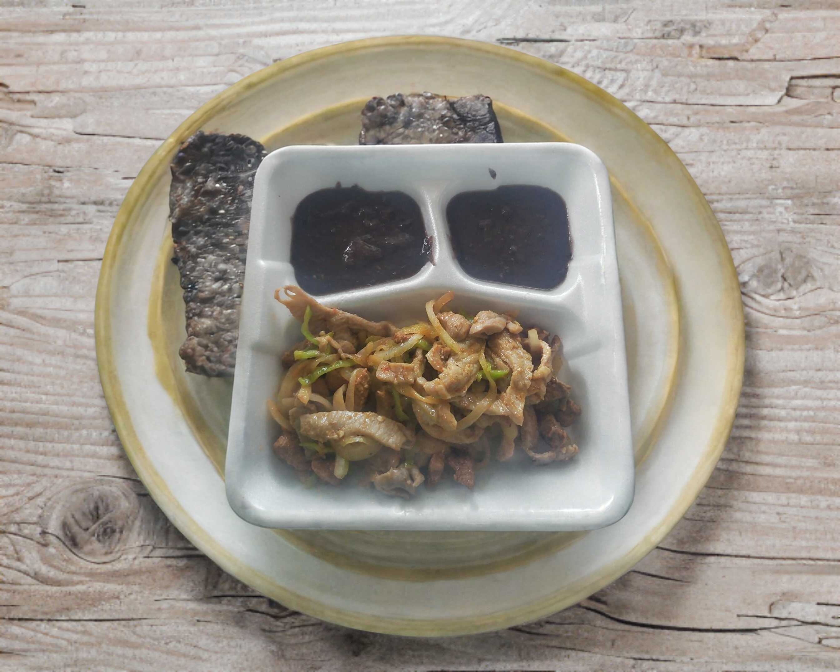 Orden de bistek de cerdo al gusto acompañado de frijoles refritos y 4 tortillas a mano