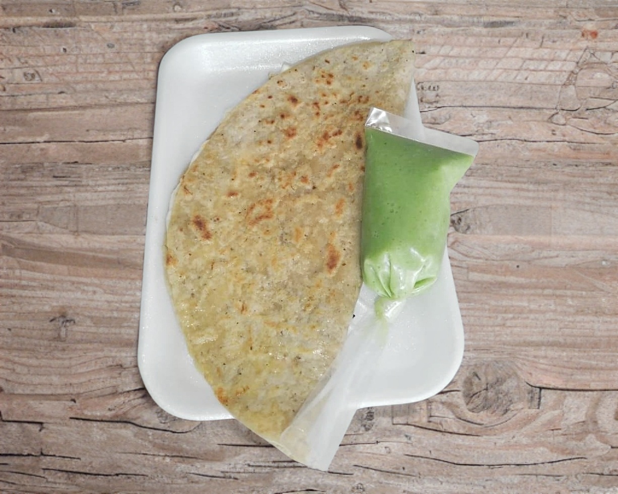 1 pieza tortilla de maíz, con manteca, acompañada de salsa a elegir queso y cebolla