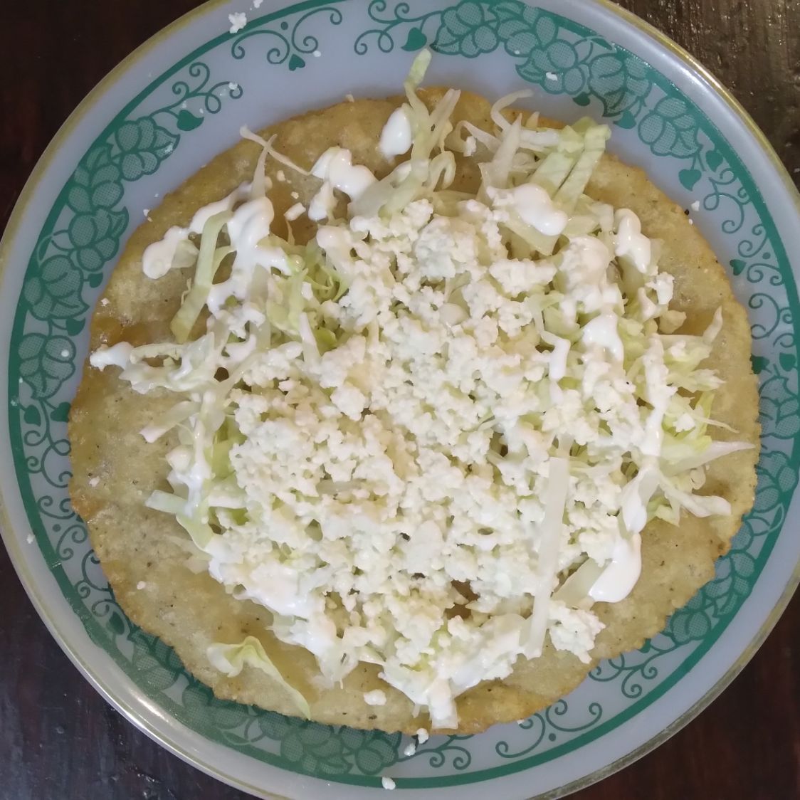 Gorditas rellenas guiso a elegir (pollo con queso de hebra, picadillo con queso hebra, chorizo con queso de hebra salsa a elegir (tomate, verde, chipotle, ranchera) lechuga, crema y queso.