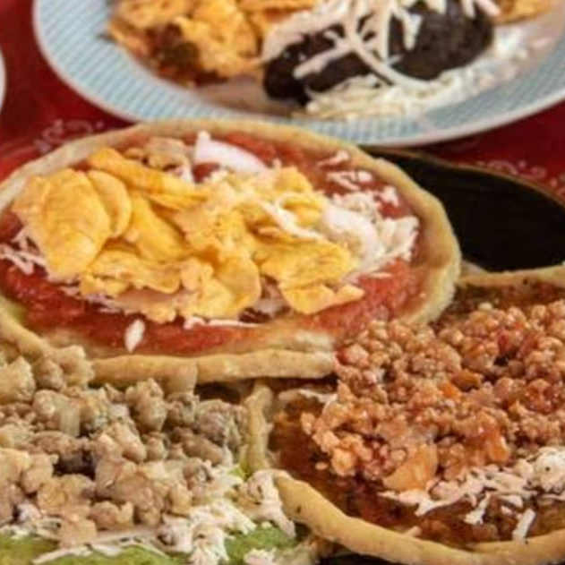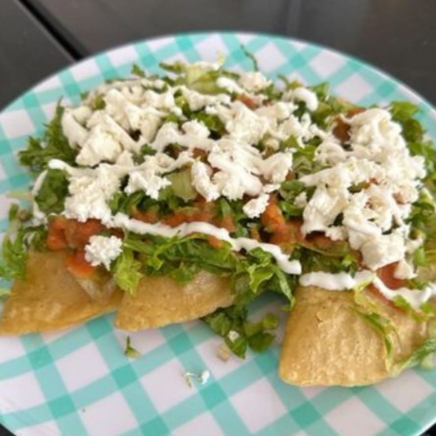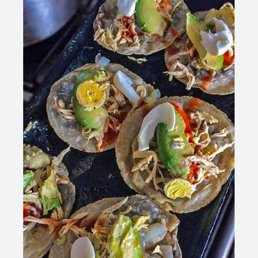 Picadas sencillas con salsa de tomate verde ranchera con cebolla y queso.