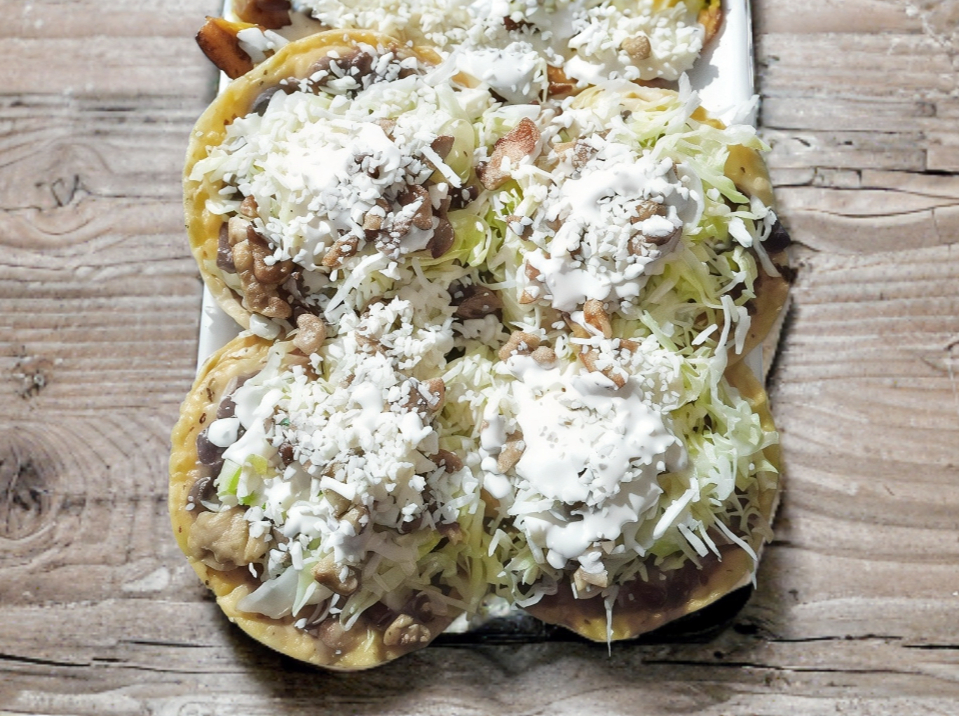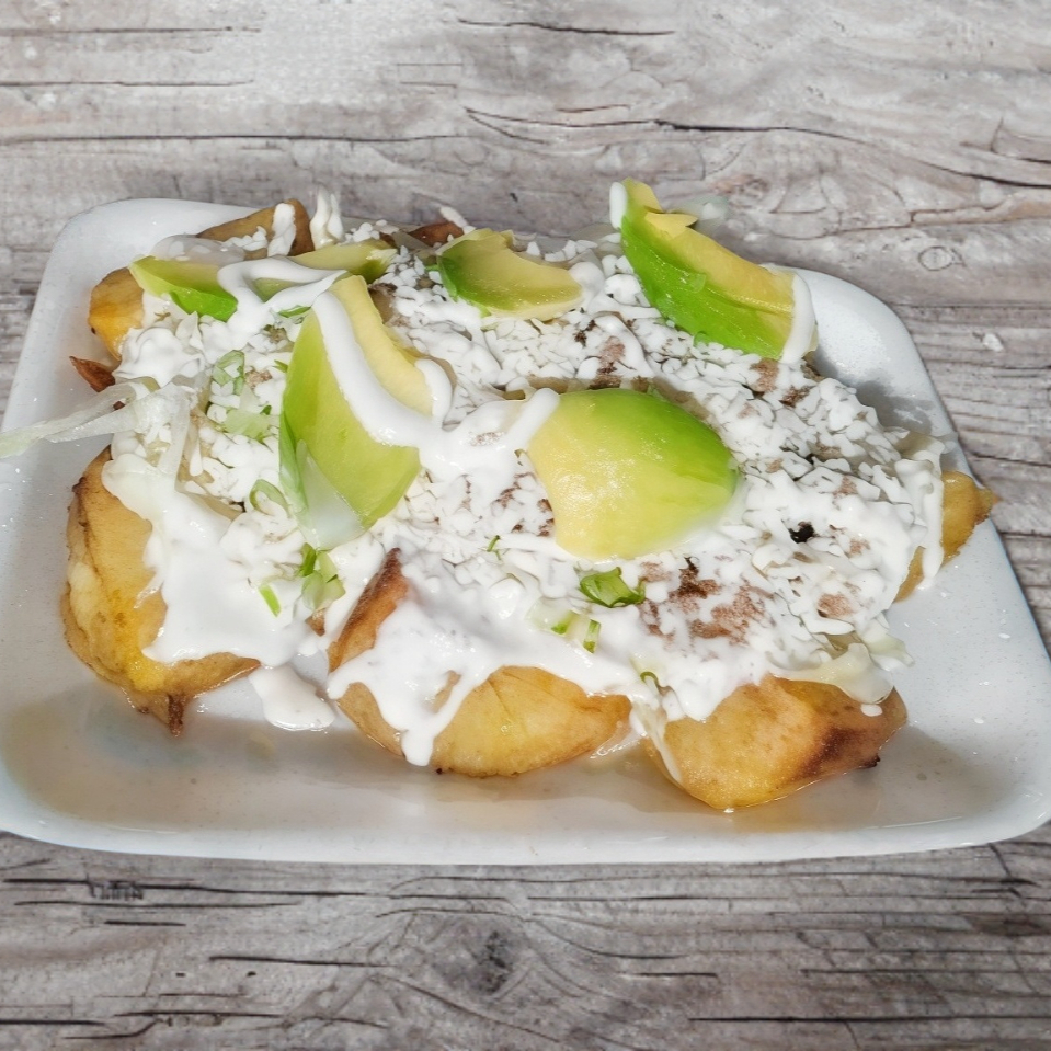 (por unidad ) Tostadas de picadillo, bistec ,longaniza o lechuga crema y queso de hebra
