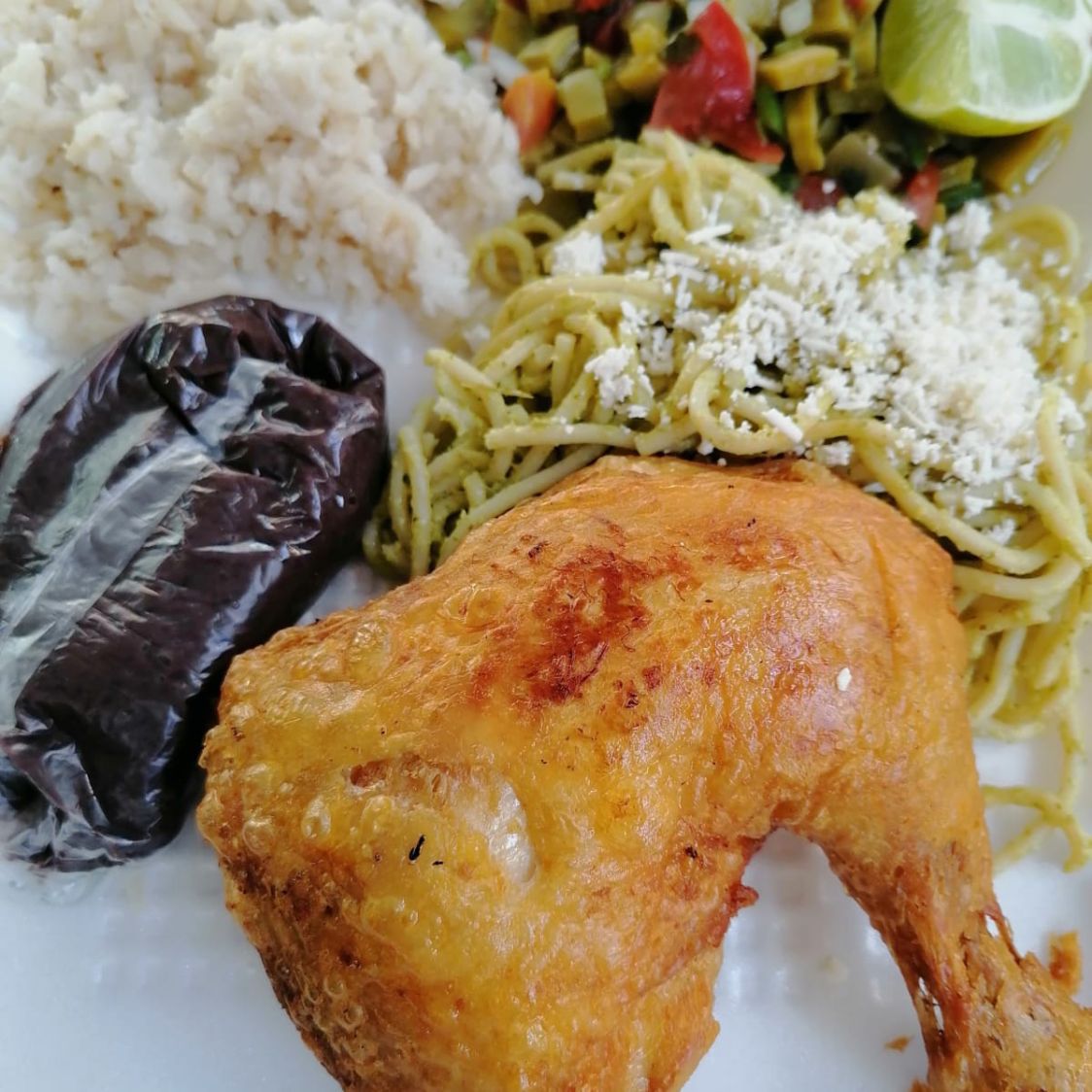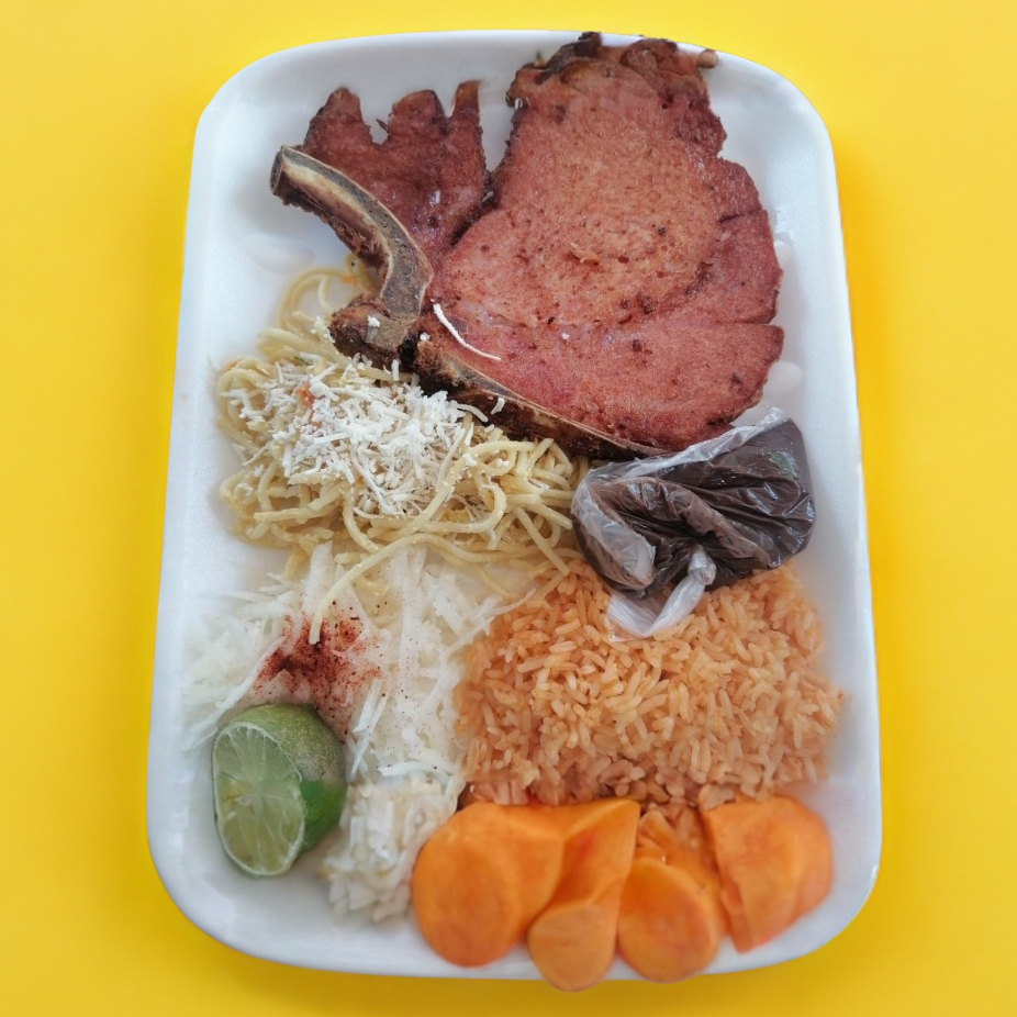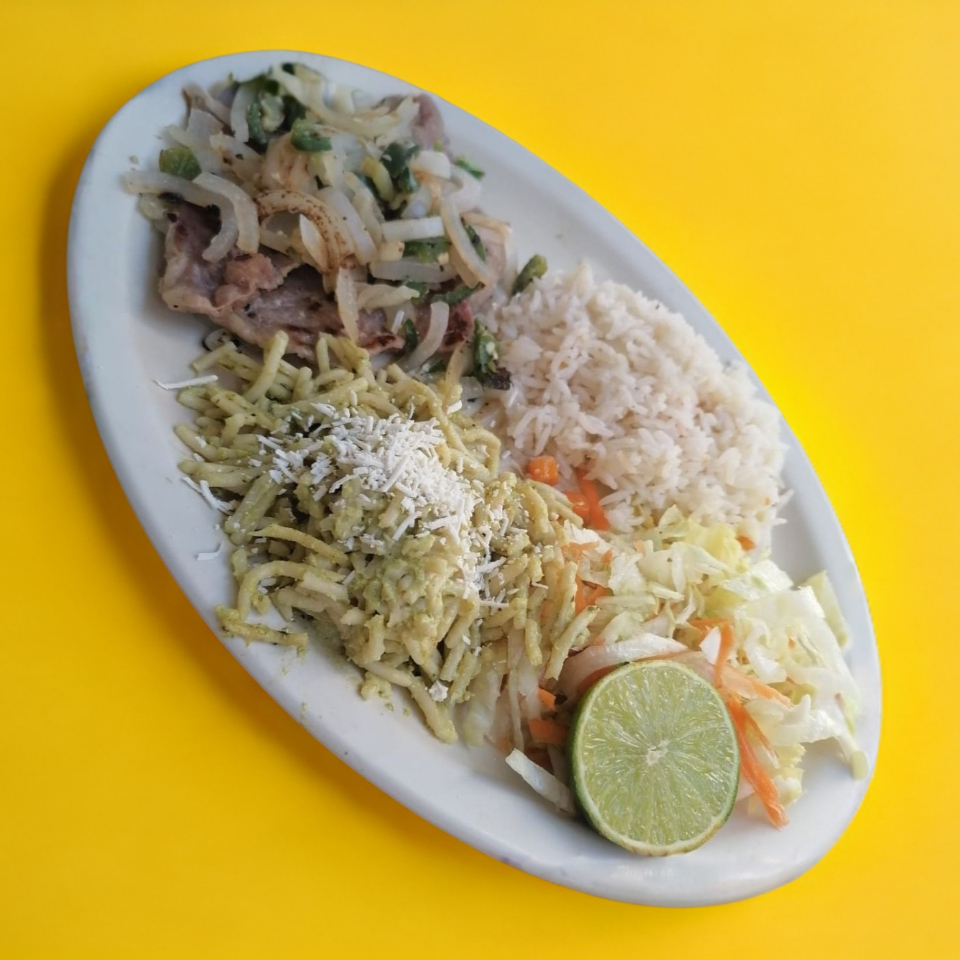 Incluye: sopa, espagueti, frijol, tortillas, agua y postre.