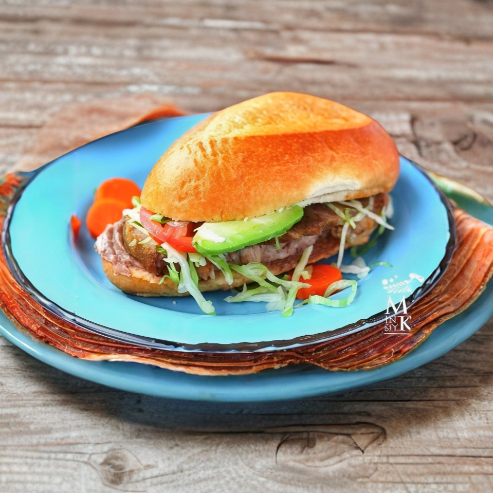 Torta con bistec de cerdo a la plancha