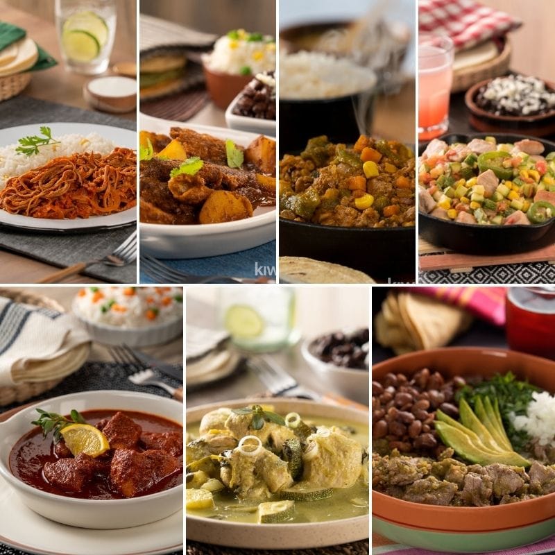 Pollo, picadillo, papa con chorizo.