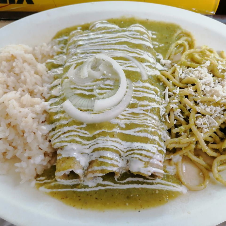 Elige tu favorito, incluye: sopa, espagueti, frijol, tortillas, agua y postre.