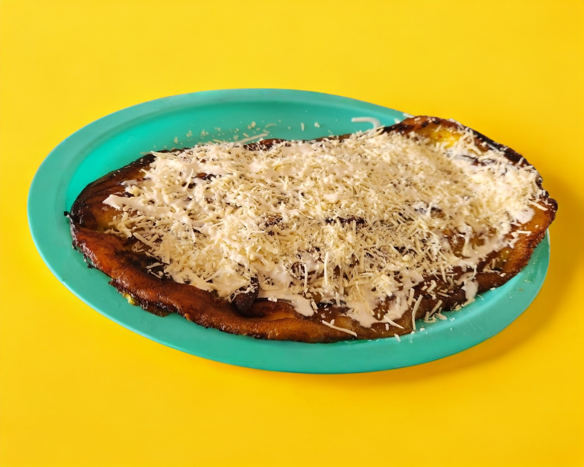 Selección de plátanos freído y acompañado de crema y queso