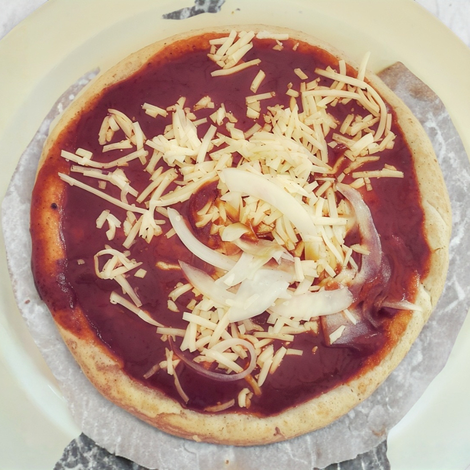 Pastor con queso , cebolla fileteada y pimiento morrón