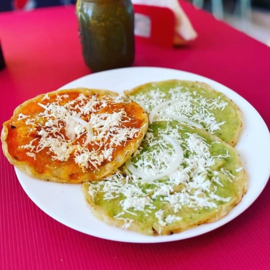 Tortilla de maíz , salsa a elegir , proteina a elegir, queso y cebolla